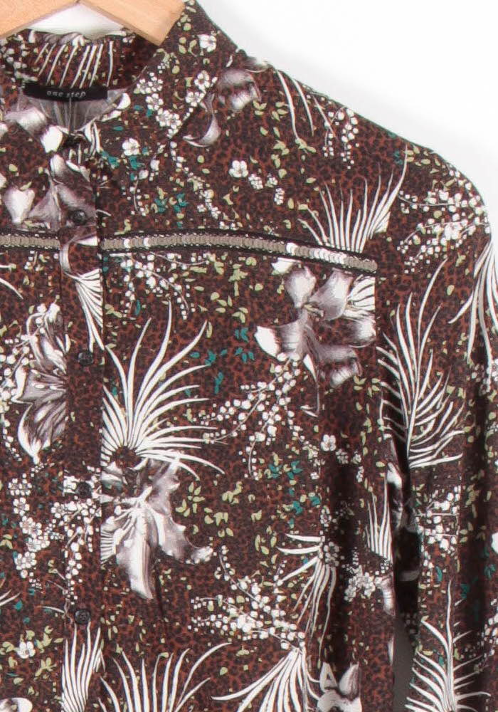 Chemise Fleurie Marron et Blanche - Taille XS/34