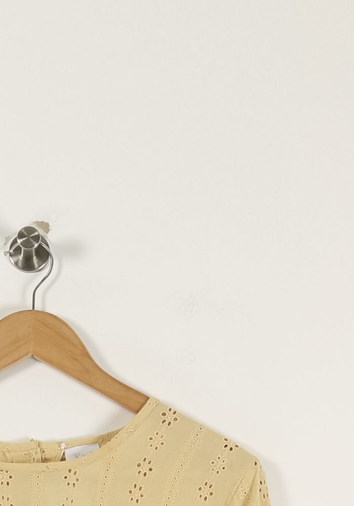 Top ajouré jaune Karl Marc John, taille L/40, à manches longues, idéal pour une allure élégante et décontractée. Confectionné en 100% coton, ce haut se distingue par ses broderies ajourées qui apportent charme et légèreté, tout en garantissant confort au quotidien. Parfait pour une journée ensoleillée ou un déjeuner en terrasse, il s’associe facilement à un jean clair ou une jupe fluide.