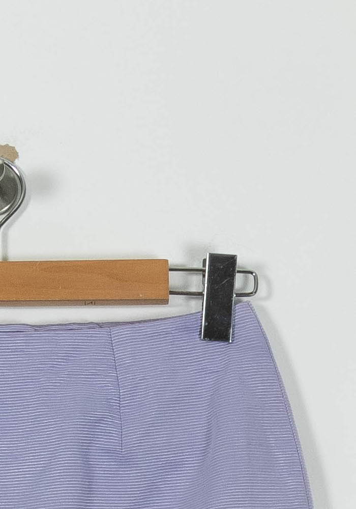 Jupe droite Weill, taille L/40, coloris violet, élégante et intemporelle. Confectionnée dans un mélange raffiné de coton (52%) et de viscose (48%), sa matière légèrement satinée sublime la simplicité de sa coupe, mettant en valeur sa couleur délicate. Idéale pour une tenue de bureau sophistiquée ou un événement estival chic.