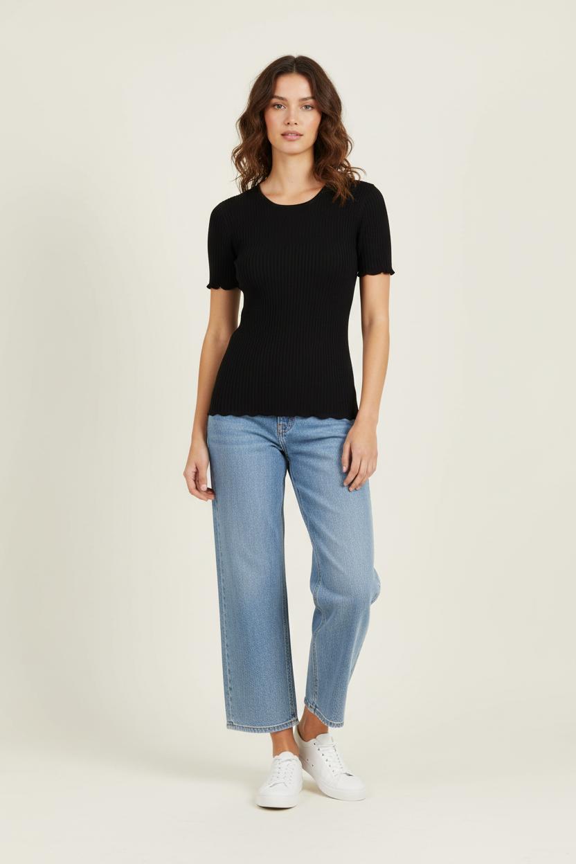 Pull en soie noir Tara Jarmon, taille unique, élégant et intemporel, parfait pour les amatrices de pièces raffinées. Réalisé en 100% soie, ce pull à manches courtes présente un tricotage finement côtelé qui lui confère une allure sophistiquée et un toucher particulièrement doux et fluide, gage d’un confort absolu et d’une très belle tenue. Idéal pour une réunion professionnelle ou un dîner en ville, il s’accorde facilement à toutes vos envies de style.