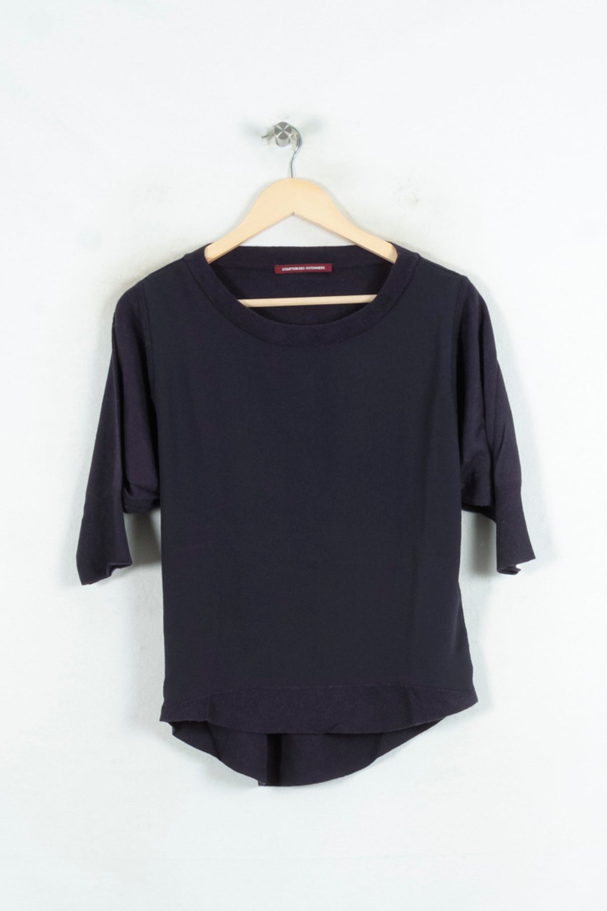 Pull bleu Comptoir des Cotonniers, taille S/36, à manches mi-longues et coupe droite. Sa matière douce et souple ainsi que la finition bord-côte à l’encolure et à la base confèrent un tombé naturel et une allure distinguée à ce modèle épuré. Ce pull est idéal pour composer une tenue élégante et confortable lors d’une journée au bureau ou pour un dîner entre amis.