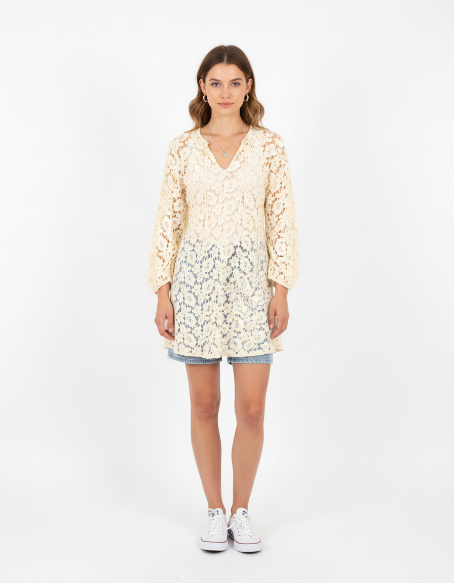 Robe courte jaune en dentelle florale Maje, taille XL/42, élégance et raffinement sont au rendez-vous avec ce modèle phare de la marque. Confectionnée dans une dentelle délicate à motif fleuri, cette pièce se distingue par ses manches longues légèrement bouffantes et son encolure en V, offrant une allure sophistiquée et féminine. Idéale pour un cocktail printanier ou une cérémonie en journée, cette robe sublime la silhouette avec douceur et légèreté.