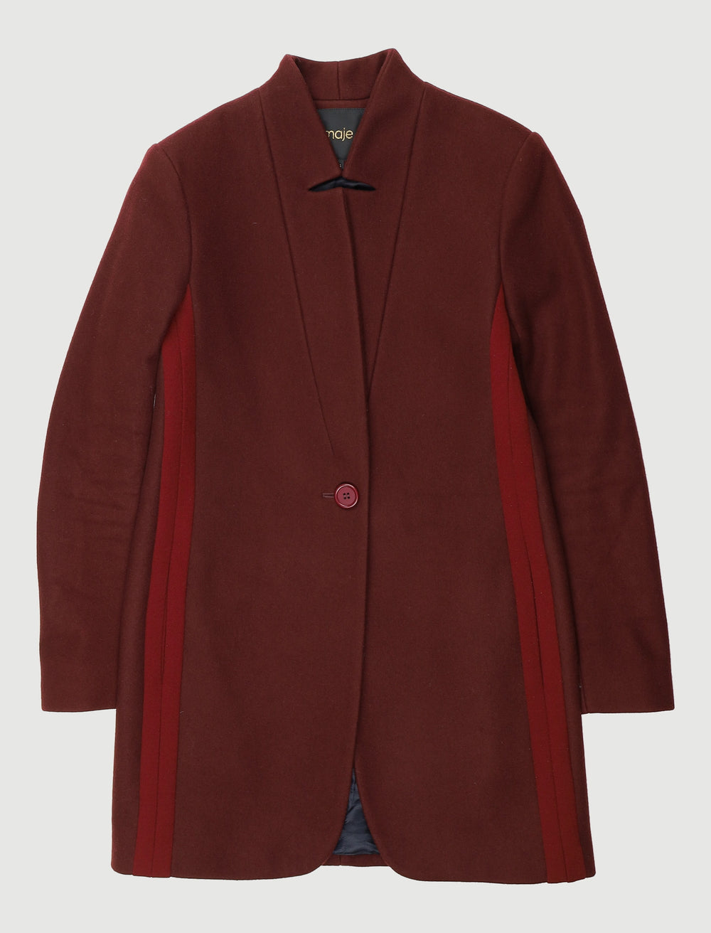 - Confectionné en laine vierge le manteau se pare de bandes contrastantes le long de chaque côté.