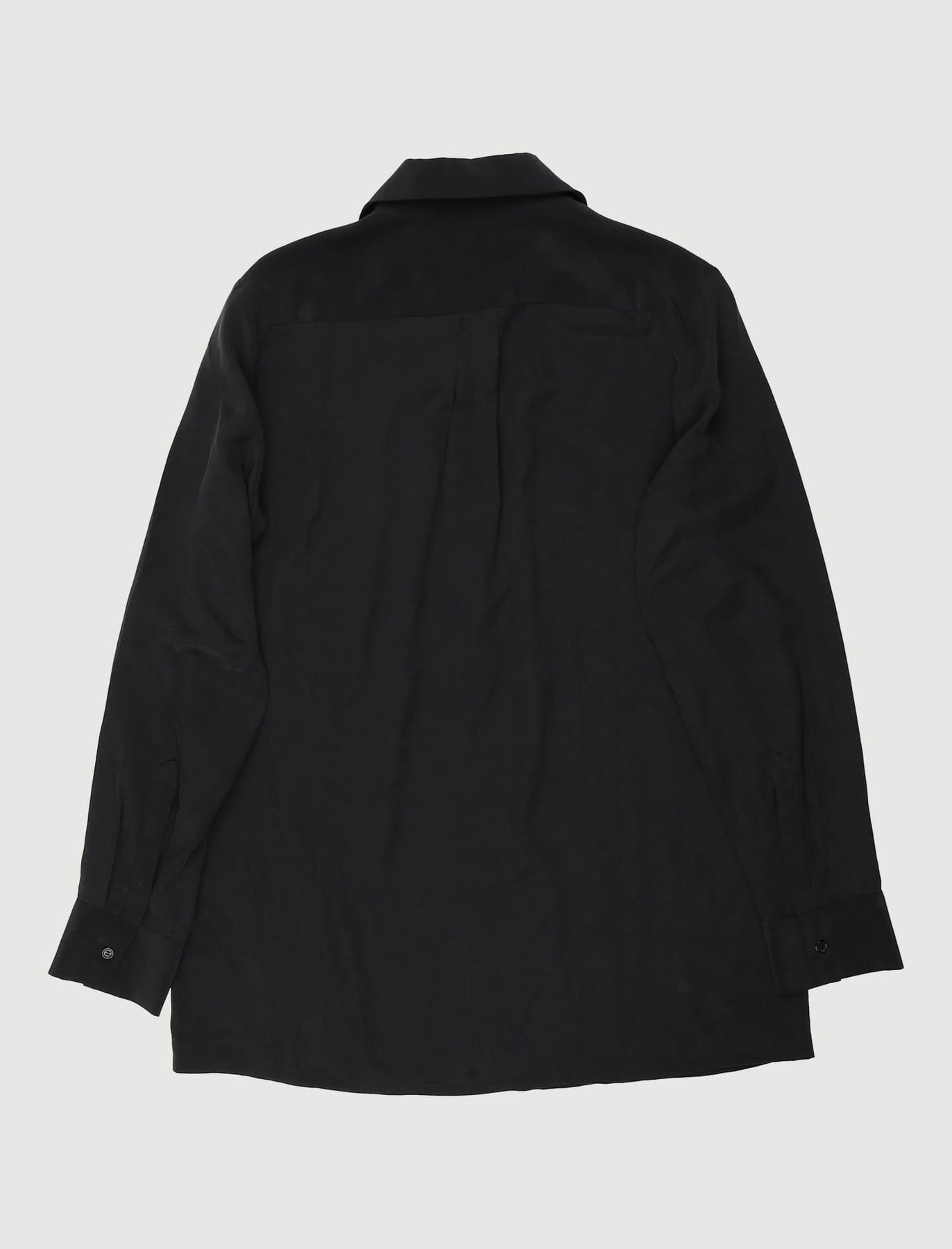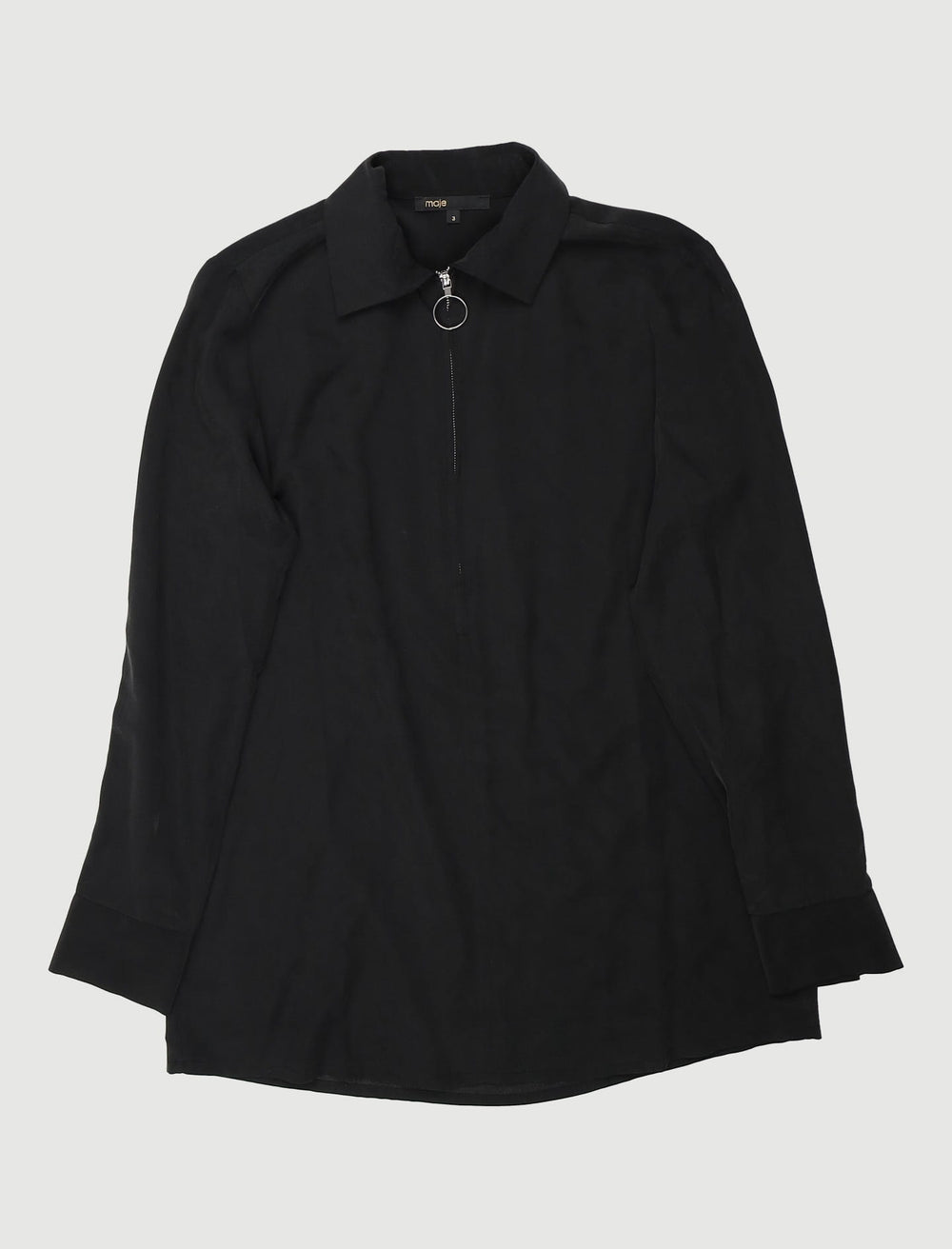 Description : Confectionnée en soie, cette chemise est d'une grande fluidité et d'une extrême douceur. Les manches sont longues et les poignets boutonnés. Le modèle se ferme à l'aide d'un zip sur le devant, orné d'une tirette en forme d'anneau métallique. Un classique mis au goà»t du jourÂ!