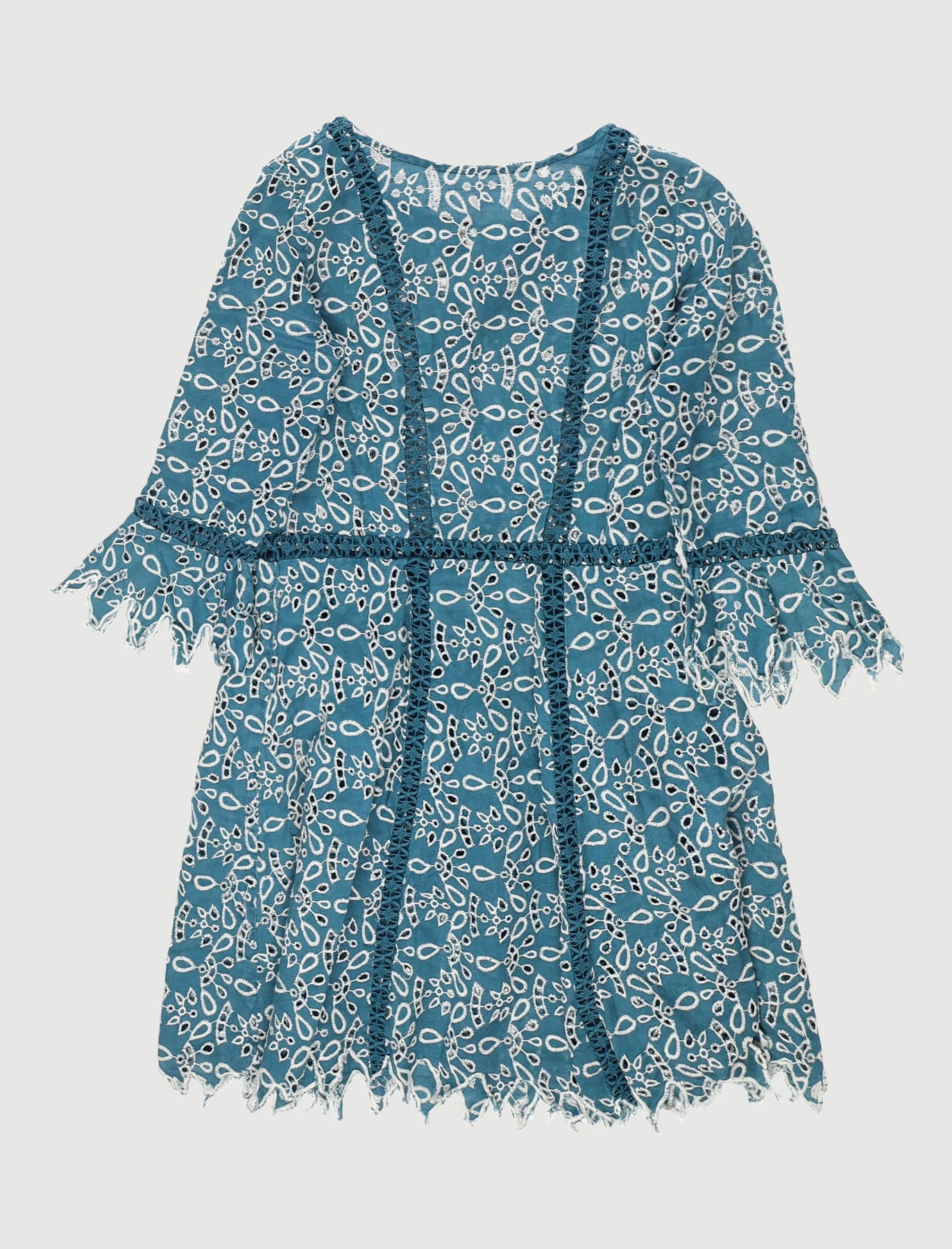 - Découpes fantaisies avec galons incrustés en broderie ajourée.