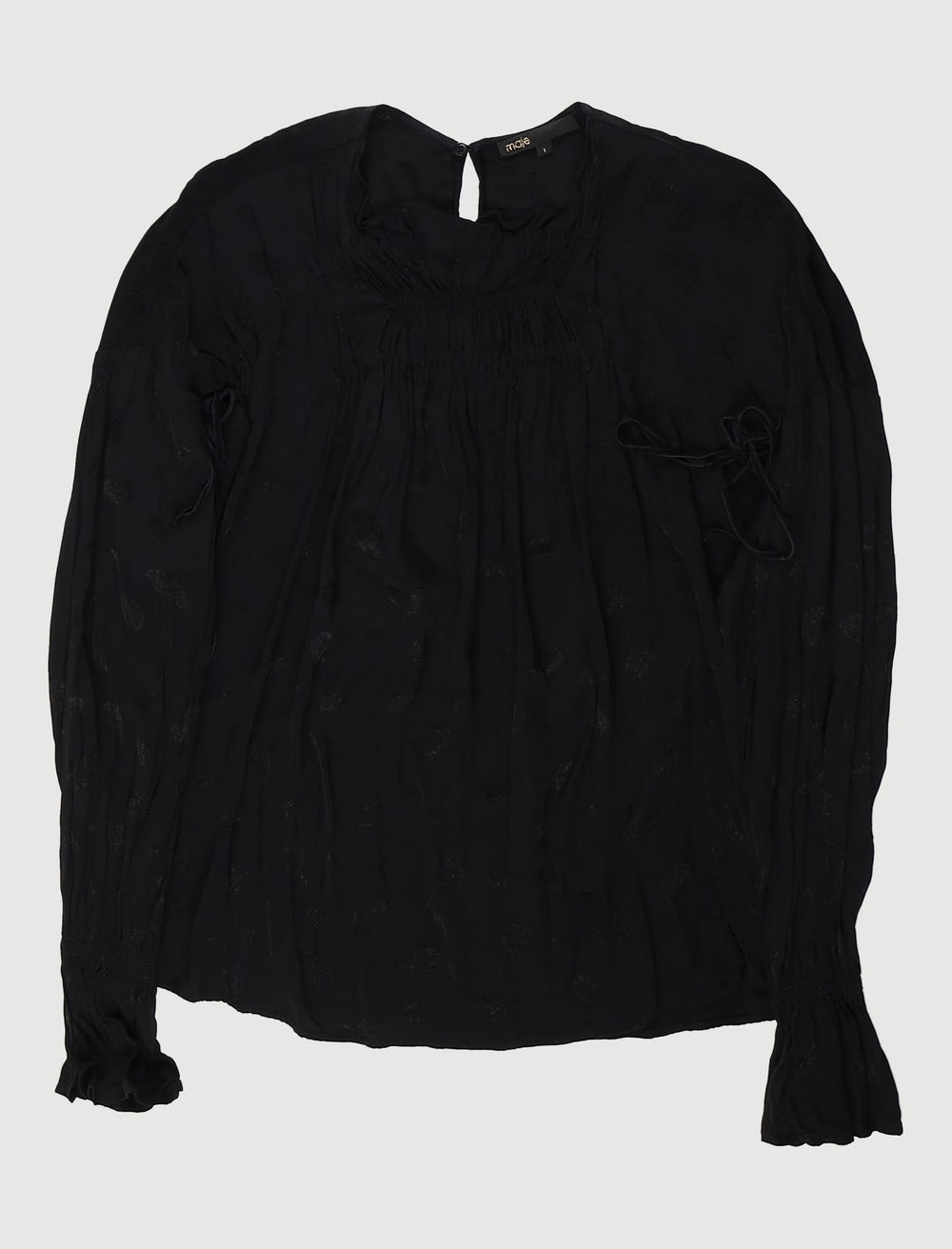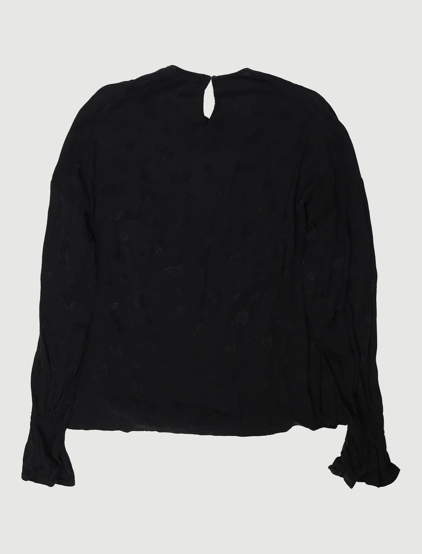 - Top à manches longues avec col montant volanté, taillé dans un tissu texturé.