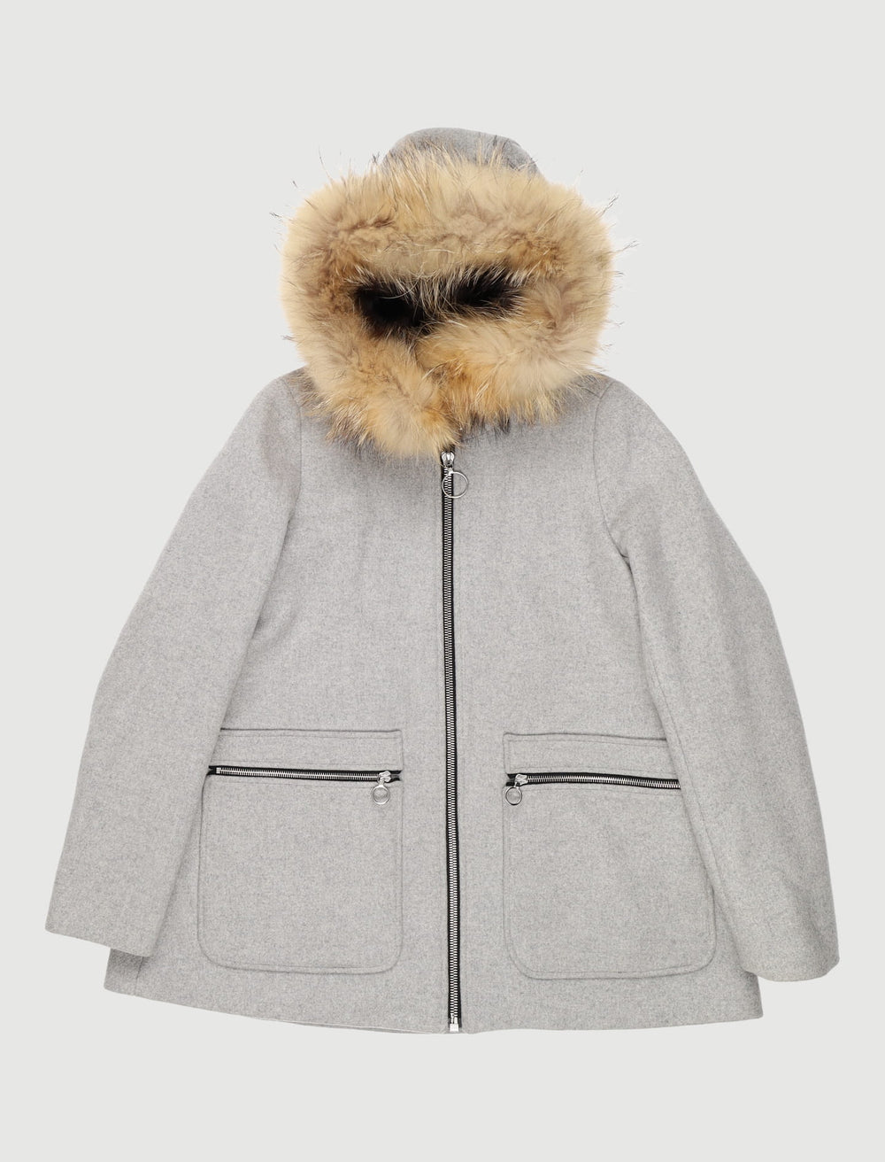 Manteau Droit Avec Capuche Fourrure Gris - Taille S/36