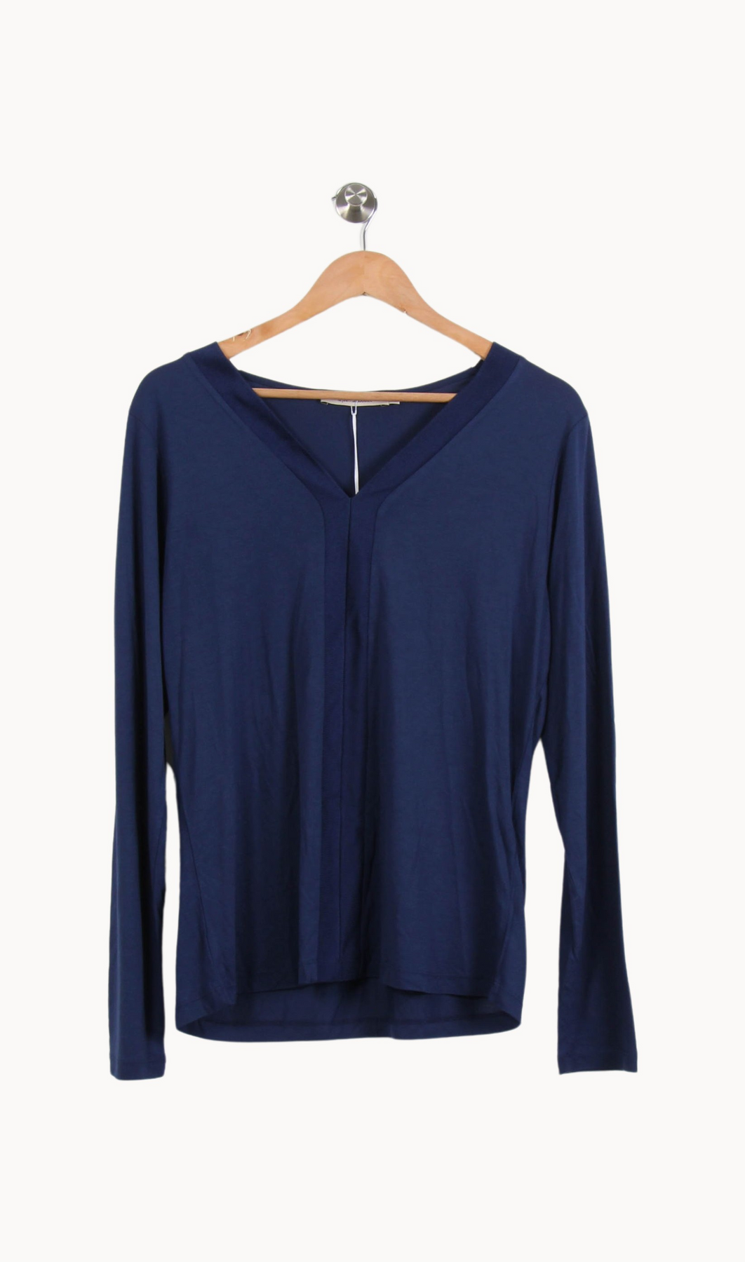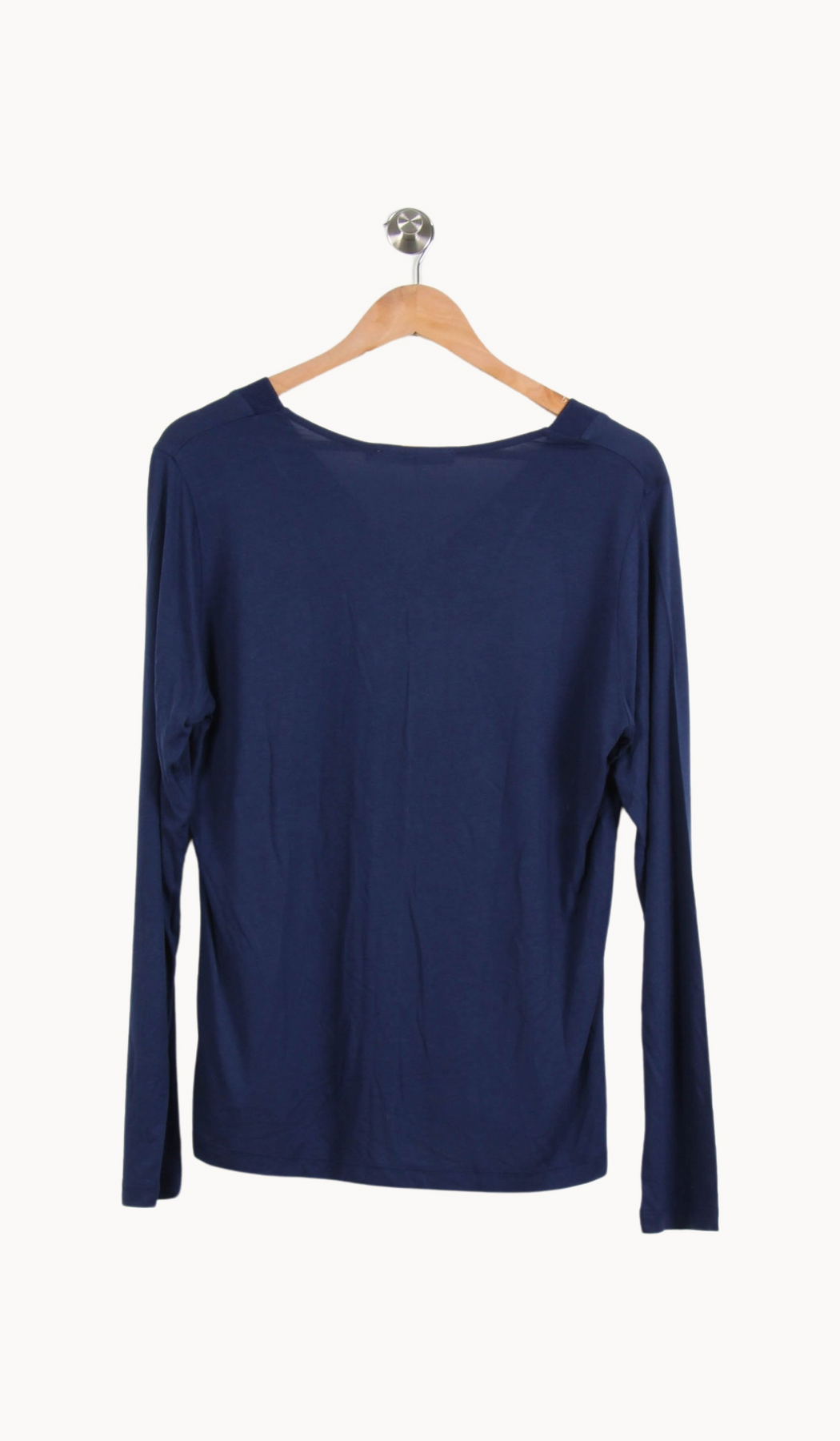 Top bleu à manches longues La Fée Maraboutée, taille XL/42, une pièce élégante et intemporelle idéale pour sublimer votre garde-robe. Confectionné dans une matière fluide à la texture douce, ce top se distingue par son encolure en V et sa coupe légèrement ample offrant confort et raffinement. Parfait pour une journée au bureau ou une sortie décontractée, il s’adapte à toutes les occasions grâce à sa sobriété chic.