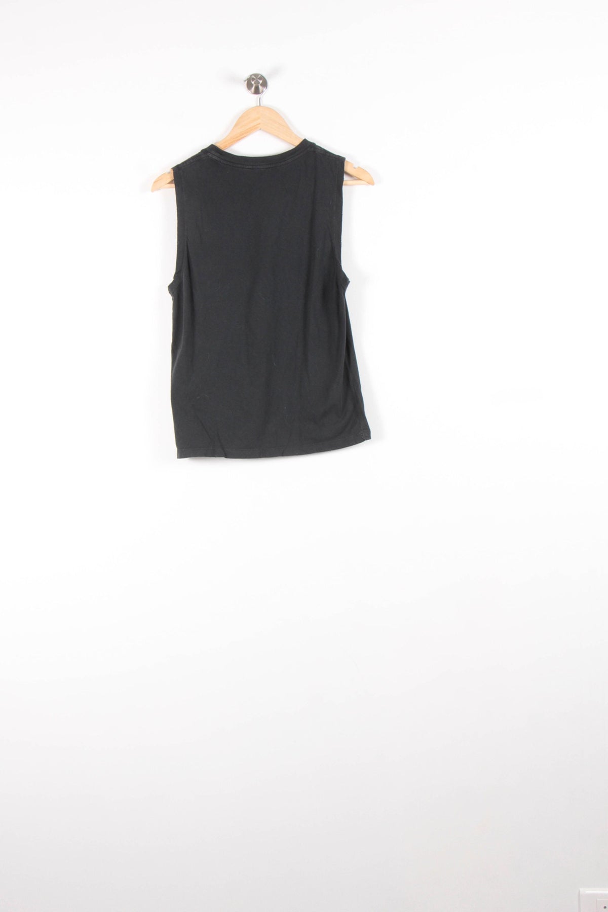 Top sans manches noir The Kooples taille S/36, motif skull imprimé sur le devant. Confectionné dans une matière légère, ce top se distingue par son imprimé audacieux façon rock et le détail "ON FIRE" en contraste, offrant une touche unique et contemporaine. Idéal pour un concert ou un festival, à associer avec un jean ou une jupe pour un look tendance et affirmé.