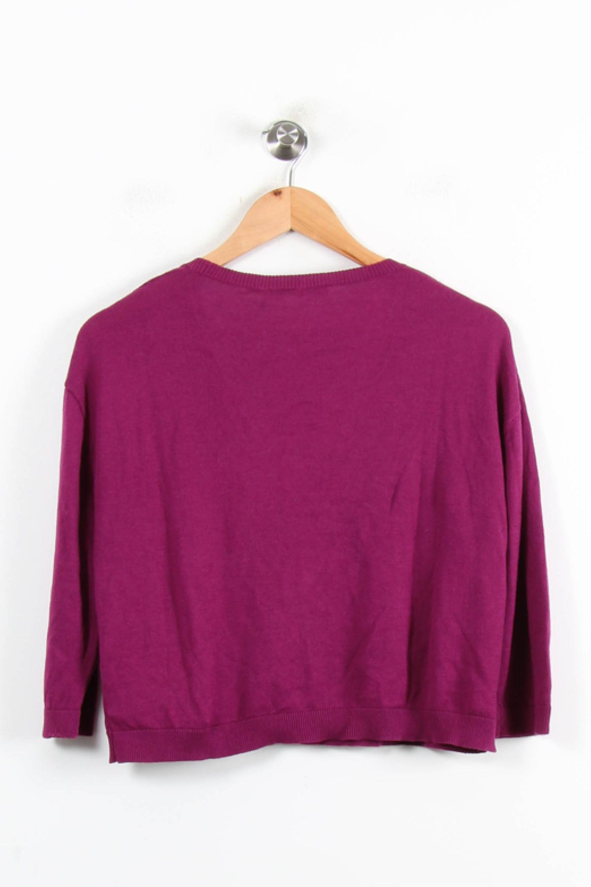 Cardigan violet La Fée Maraboutée, taille M/38, à la coupe droite et manches longues, idéal pour une allure élégante et décontractée. Sa maille fine, son coloris intense et la finition des boutons ton sur ton en font une pièce facile à porter, tout en lui conférant un charme distinctif. Ce cardigan est parfait pour apporter une touche sophistiquée à vos tenues lors d’une journée au bureau ou pour un dîner entre amis.
