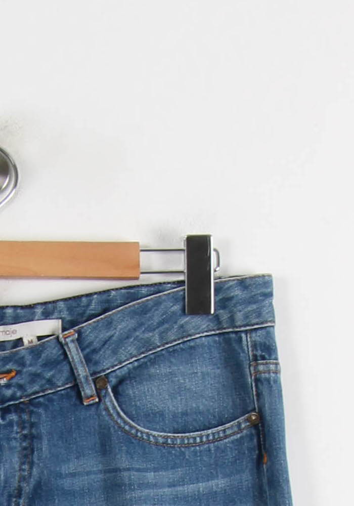 Jean droit bleu taille M/38 de la marque Maje, parfait pour une allure intemporelle et élégante. Confectionné dans un denim bleu de qualité, ce pantalon présente un léger effet délavé sur le devant et l’arrière, ainsi qu’une coupe classique à cinq poches qui en fait un incontournable du vestiaire. Idéal à porter lors d’une sortie décontractée ou pour une journée de travail au style casual chic.