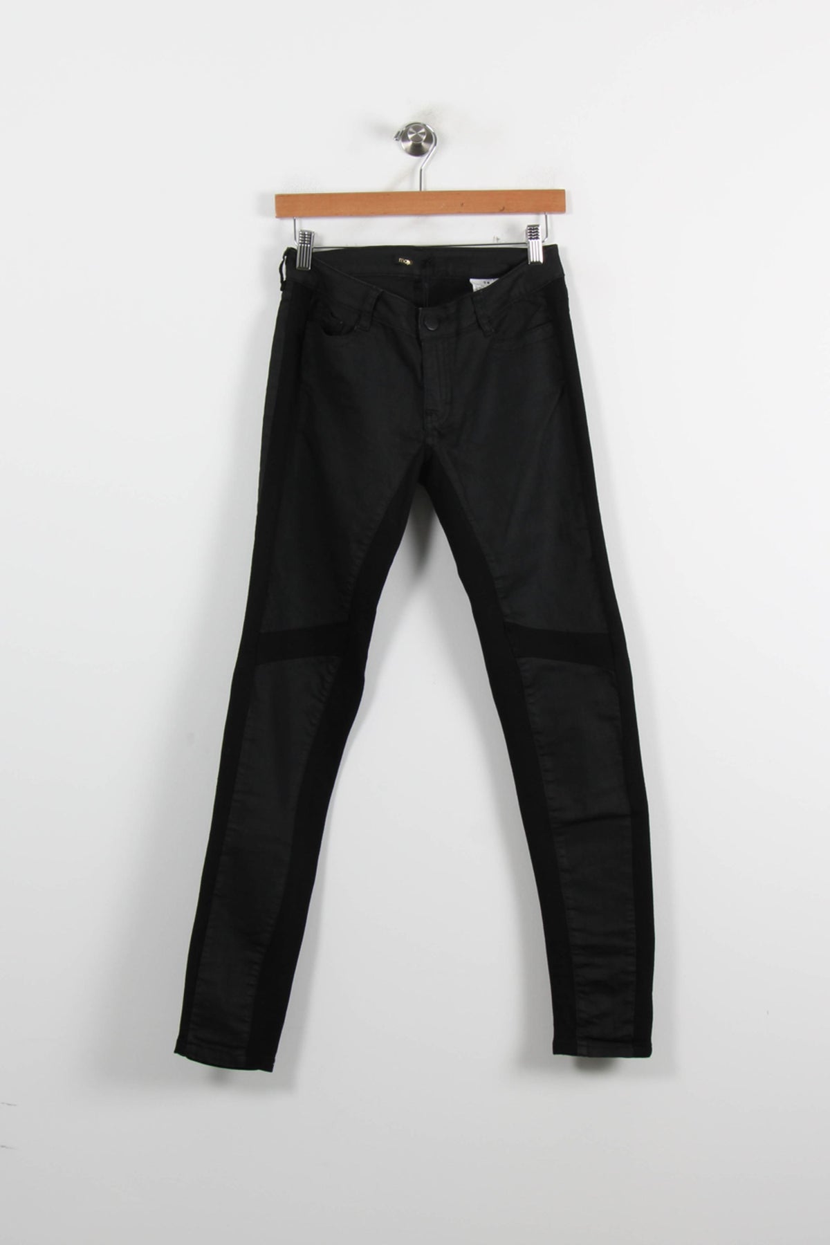 Pantalon skinny noir Maje taille M/38, signé par la marque reconnue pour son style chic et intemporel. Ce pantalon présente une construction ajustée, agrémentée de jeux de matières aux côtés et sur les jambes, apportant une touche graphique et moderne à ce modèle classique, tout en mettant en valeur la silhouette. Idéal pour une journée de travail élégante ou une soirée entre amis, il s’associe facilement à une chemise ou un top habillé.