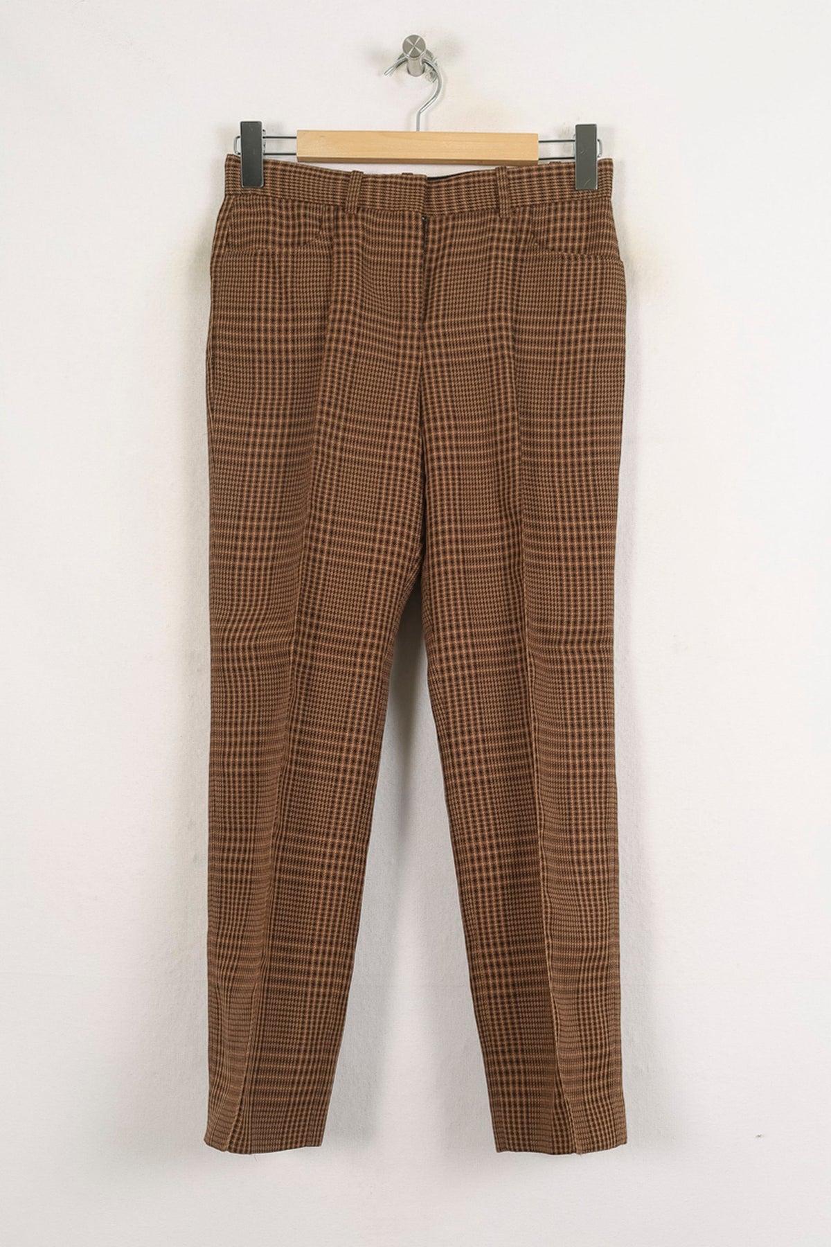 Pantalon à carreaux marron Maje, taille S/36, élégant et intemporel, parfait pour rehausser toute garde-robe. Confectionné dans une matière à motif prince-de-galles, il dispose de passants de ceinture et d’une coupe droite offrant une allure à la fois sophistiquée et moderne. Idéal pour une journée de travail ou un rendez-vous professionnel, ce pantalon s’accorde aisément avec une chemise blanche et des chaussures en cuir.