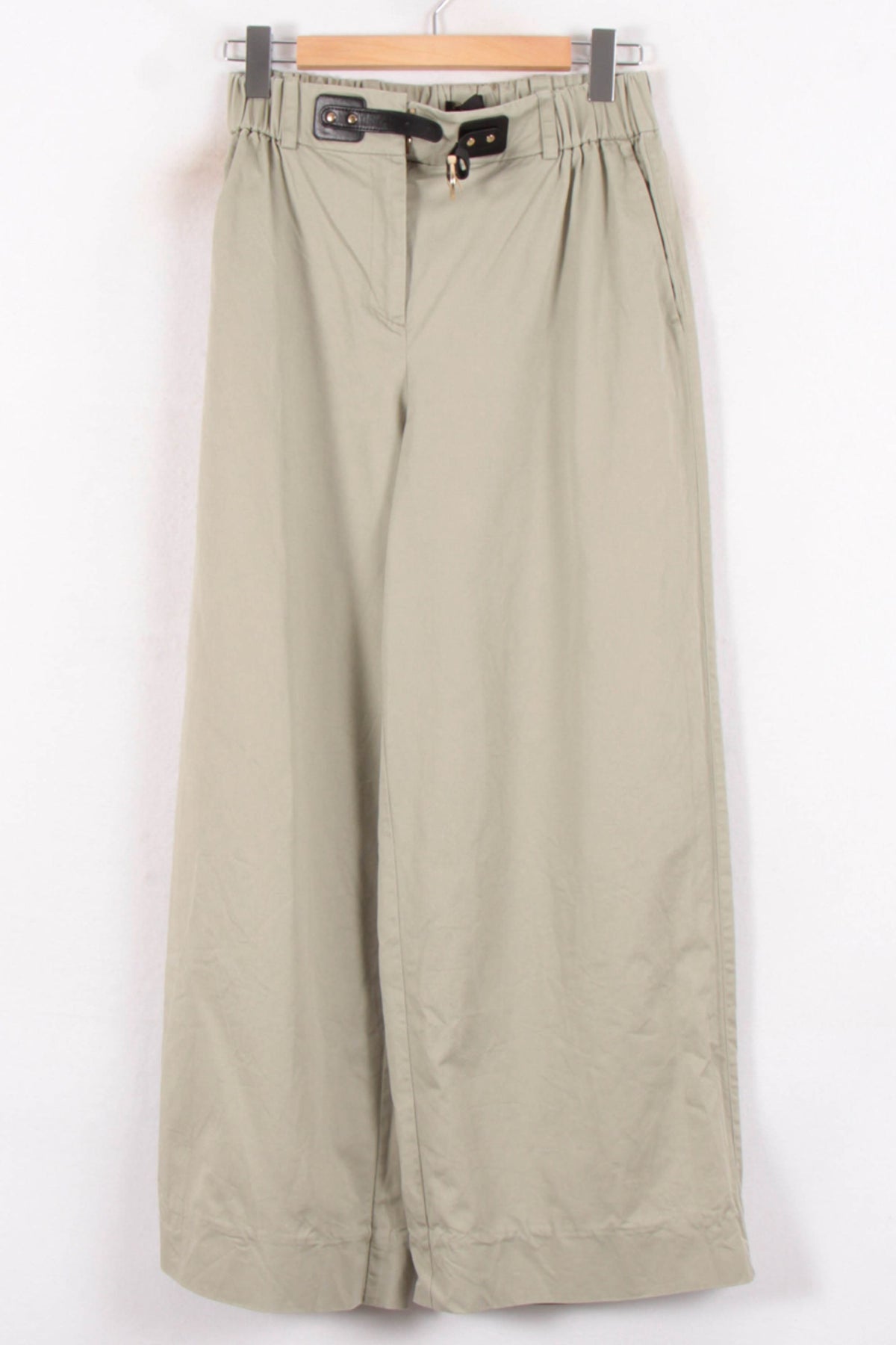 Pantalon large vert Maje, taille M/38, au style élégant et moderne, idéal pour une allure sophistiquée. Confectionné dans une matière fluide et légère, ce pantalon se distingue par sa ceinture intégrée à boucle cuir et sa taille élastiquée, apportant une touche de caractère et un ajustement confortable. Parfait pour une journée au bureau ou une sortie citadine, il accompagne aisément un look chic et décontracté.