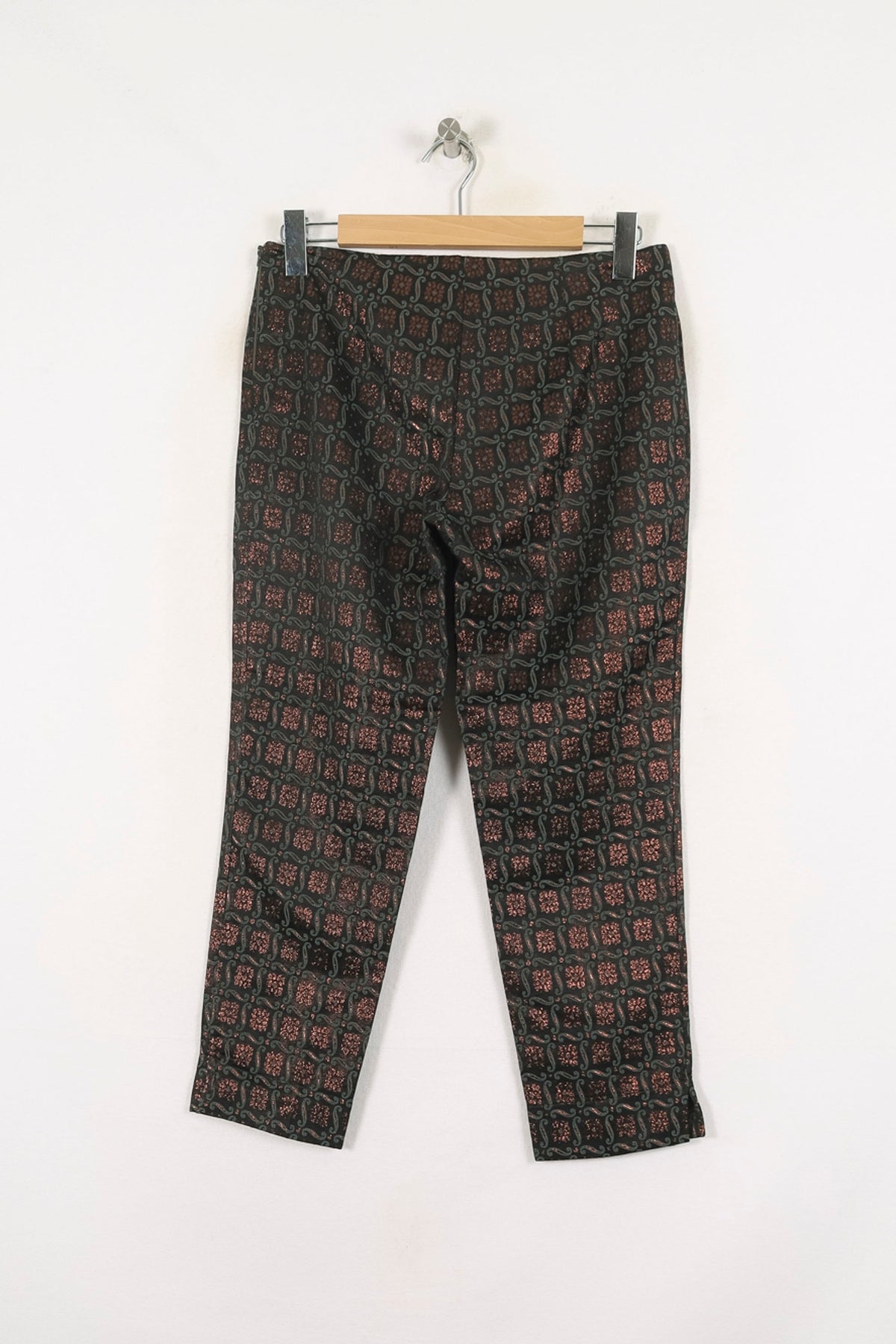 Pantalon multicolore La Fée Maraboutée taille M/38, au motif graphique élégant et original. Sa matière à l’aspect souple et structuré, rehaussée par un imprimé géométrique aux tons profonds, confère une touche unique et sophistiquée à ce vêtement. Idéal pour une journée au bureau ou un dîner chic, ce pantalon se distingue par son raffinement et son originalité.