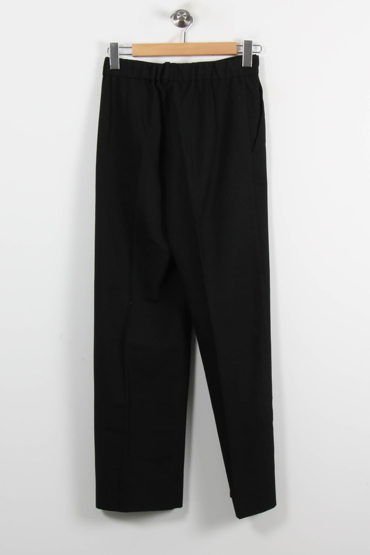 Pantalon noir droit Maje, taille S/36, confection élégante de la marque Maje, idéal pour une silhouette sophistiquée. Ce pantalon présente une coupe classique et raffinée, sublimée par des plis marqués à l'avant et une finition propre qui apportent modernité et distinction à la pièce. Un choix parfait pour une journée de travail ou une réunion professionnelle grâce à son allure chic et intemporelle.