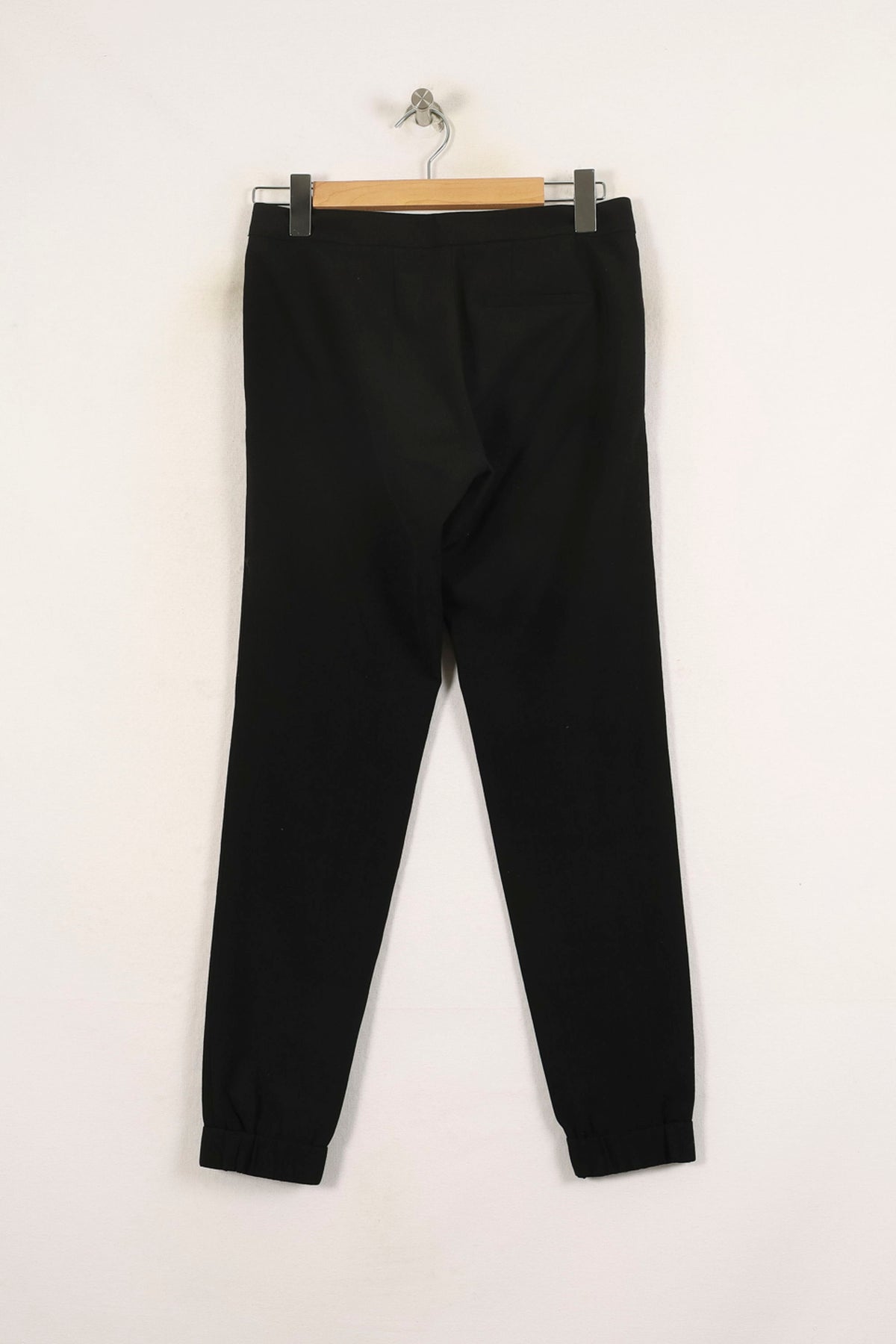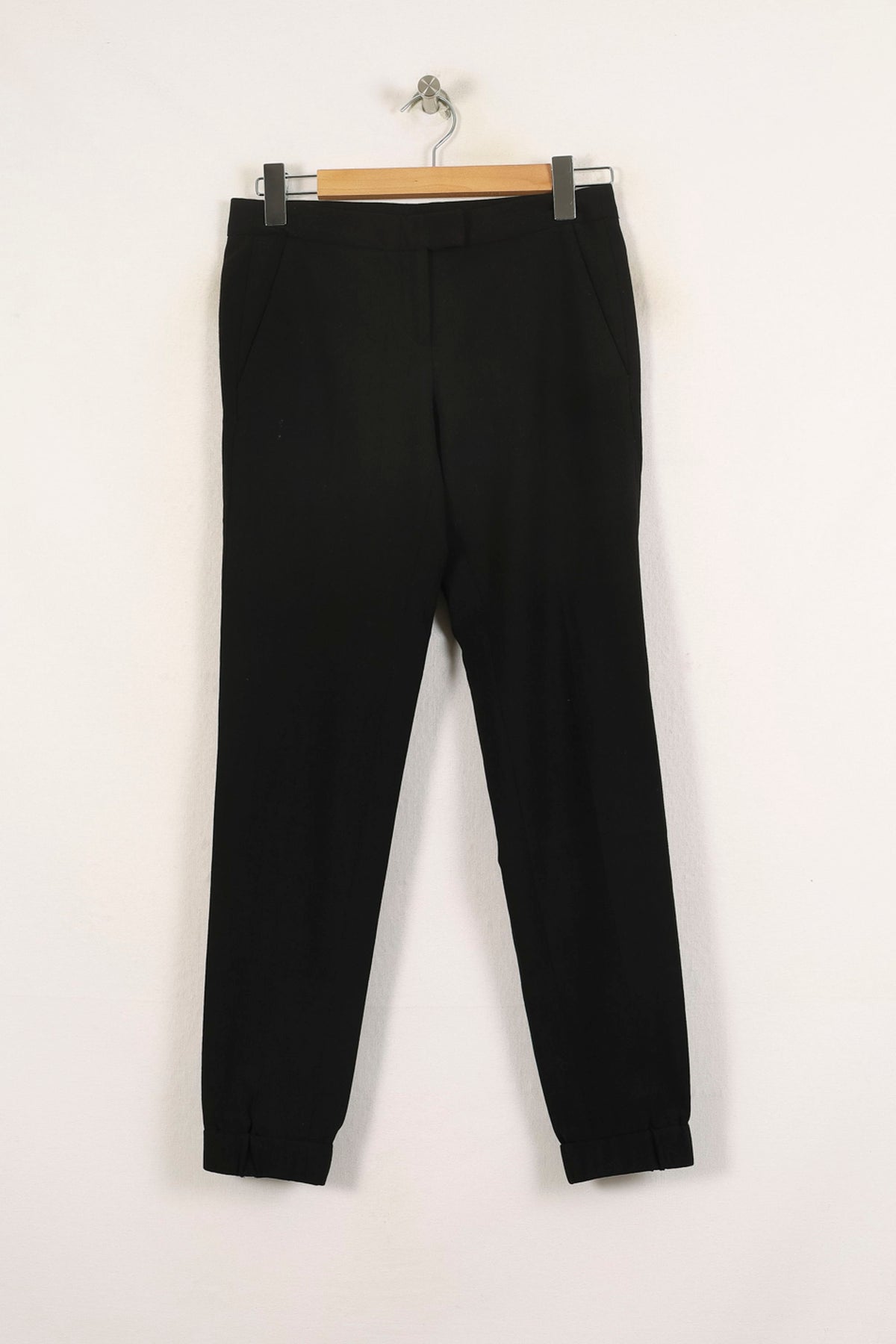 Pantalon noir taille S/36 de la marque Maje, à la coupe droite et épurée, idéal pour une silhouette élégante et contemporaine. Confectionné dans une matière fluide et structurée, ce pantalon se distingue par ses finitions soignées, ses poches latérales discrètes et le détail plissé au bas de la jambe qui lui apporte une touche moderne. Parfait pour une journée au bureau ou une soirée chic, il s'accorde aisément avec une blouse et des escarpins.