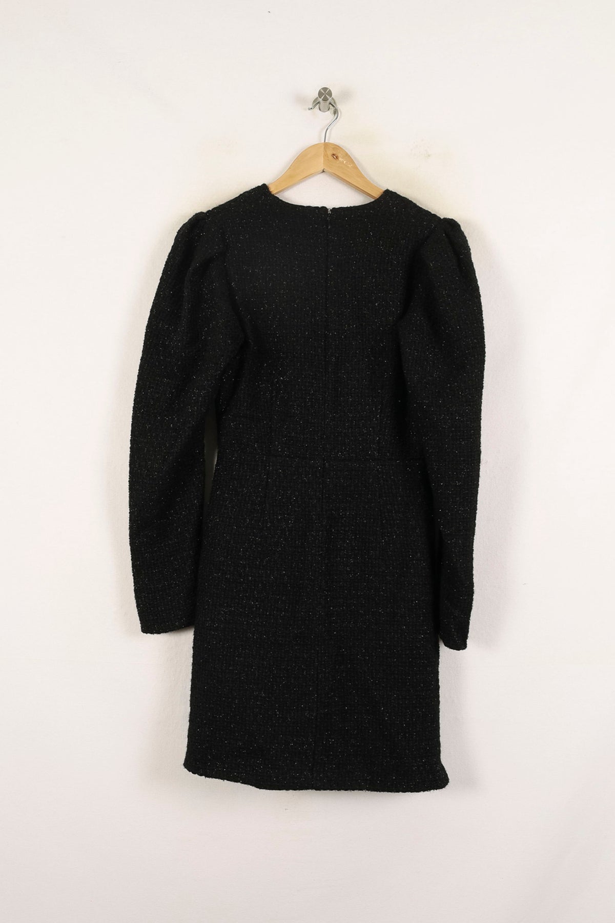 Robe Bérénice noire à manches longues, taille S/36, élégante et raffinée, parfaite pour sublimer votre silhouette. Confectionnée dans une matière texturée incrustée de fils discrets, elle se distingue par son drapé frontal délicat et son encolure en V, apportant une touche d'originalité et de sophistication. Idéale pour une soirée habillée ou un cocktail chic, cette robe saura vous accompagner lors de vos événements spéciaux.