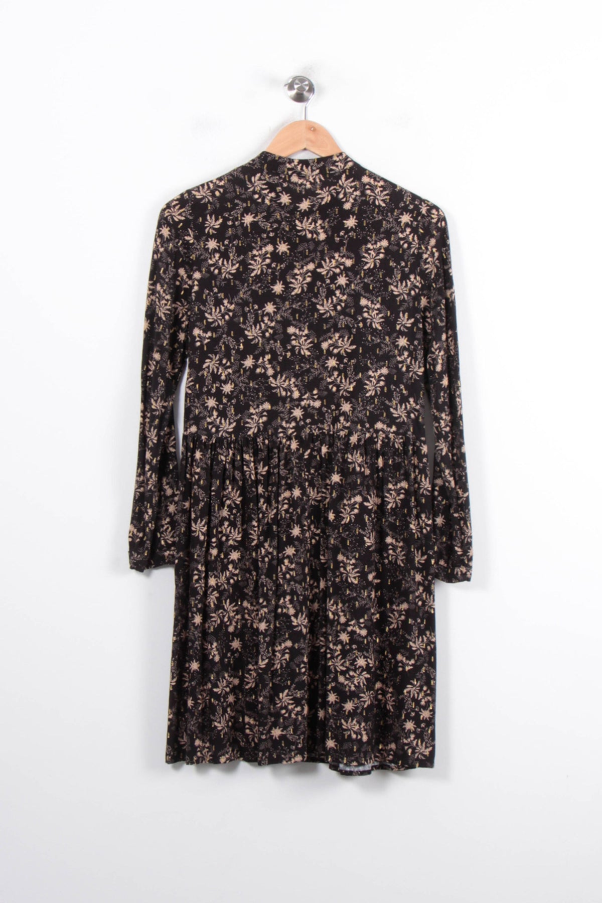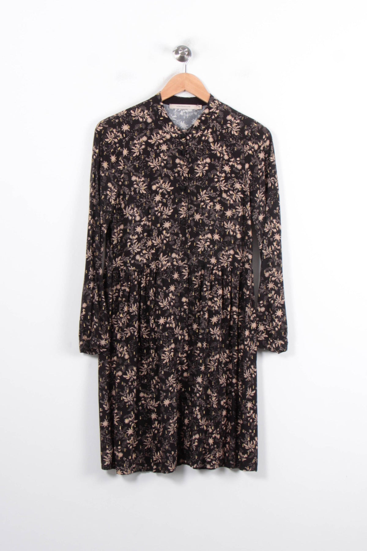 Robe noire La Fée Maraboutée taille M/38, à motif fleuri beige, élégante et intemporelle. Sa matière fluide offre un tombé naturel, tandis que ses détails de plis à la taille et son imprimé délicat ajoutent une touche d’originalité à ce modèle polyvalent. Parfaite pour une journée au bureau ou un déjeuner raffiné entre amis.