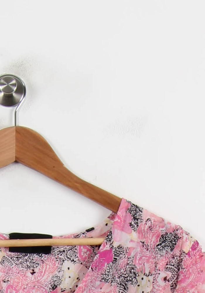 Robe fluide imprimée rose The Kooples, taille L/40, idéale pour une allure féminine et contemporaine. Légère et douce, cette robe séduit par son tissu à motif floral délicat, ses manches courtes et son décolleté en V, qui lui confèrent un style raffiné et une identité singulière. Parfaite pour une garden-party estivale ou un brunch élégant en terrasse.