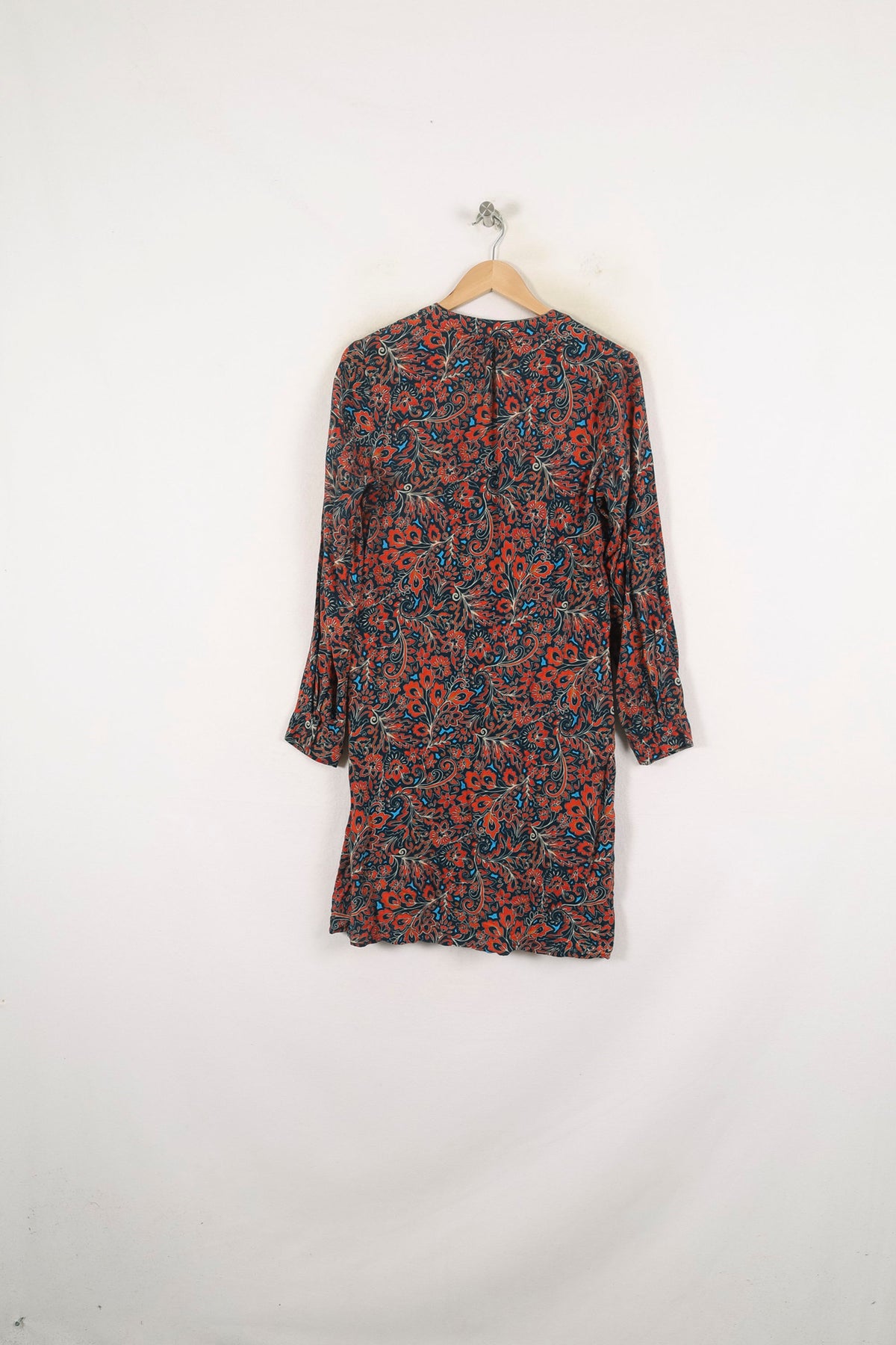 Robe multicolore à motif floral La Fée Maraboutée, taille M/38, idéale pour apporter une touche bohème à votre garde-robe. Sa matière fluide et légère s’associe à un imprimé raffiné aux teintes vives, tandis que la coupe ample et les manches longues subliment la silhouette avec élégance et singularité. Parfaite pour une journée citadine, un brunch entre amis ou une sortie culturelle.