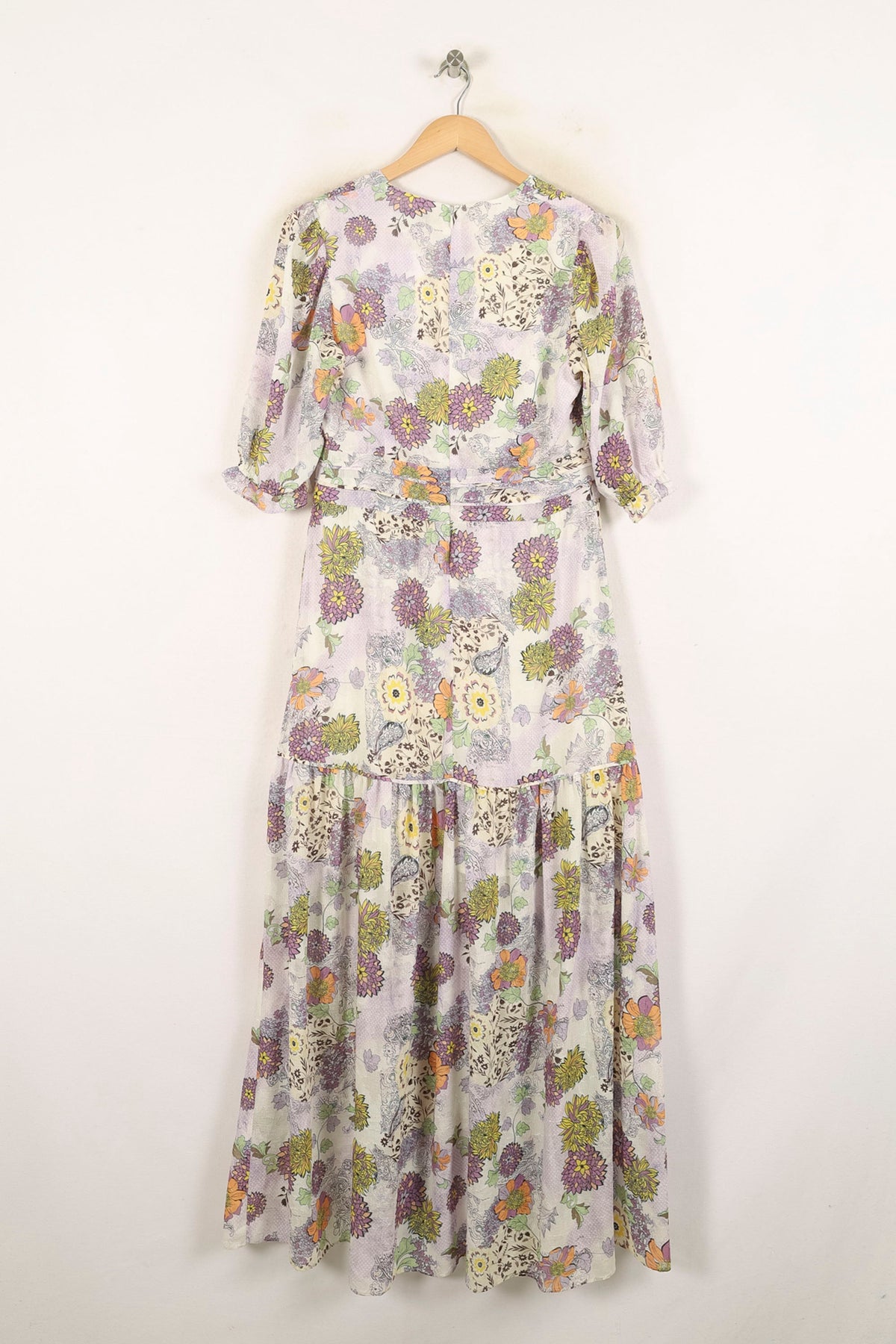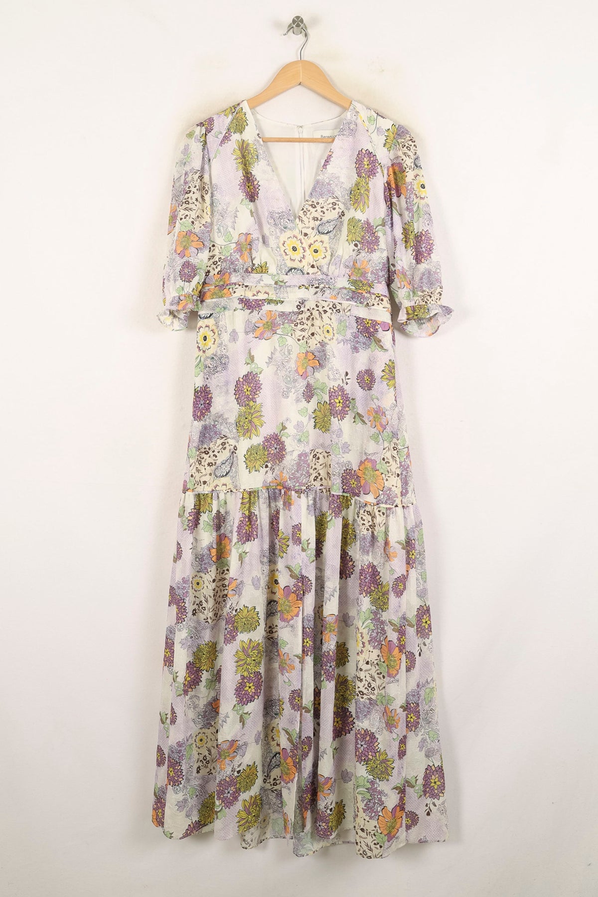 Robe longue multicolore Bérénice, taille M/38, à l'imprimé fleuri sophistiqué et à la coupe fluide. Confectionnée dans une matière légère et délicate, elle se distingue par ses motifs floraux vibrants, ses manches légèrement bouffantes et son encolure en V, apportant une touche de fraîcheur et d’originalité. Idéale pour un événement estival ou une garden-party élégante.