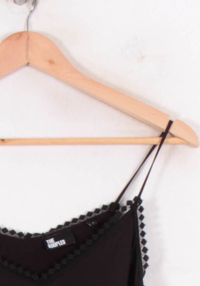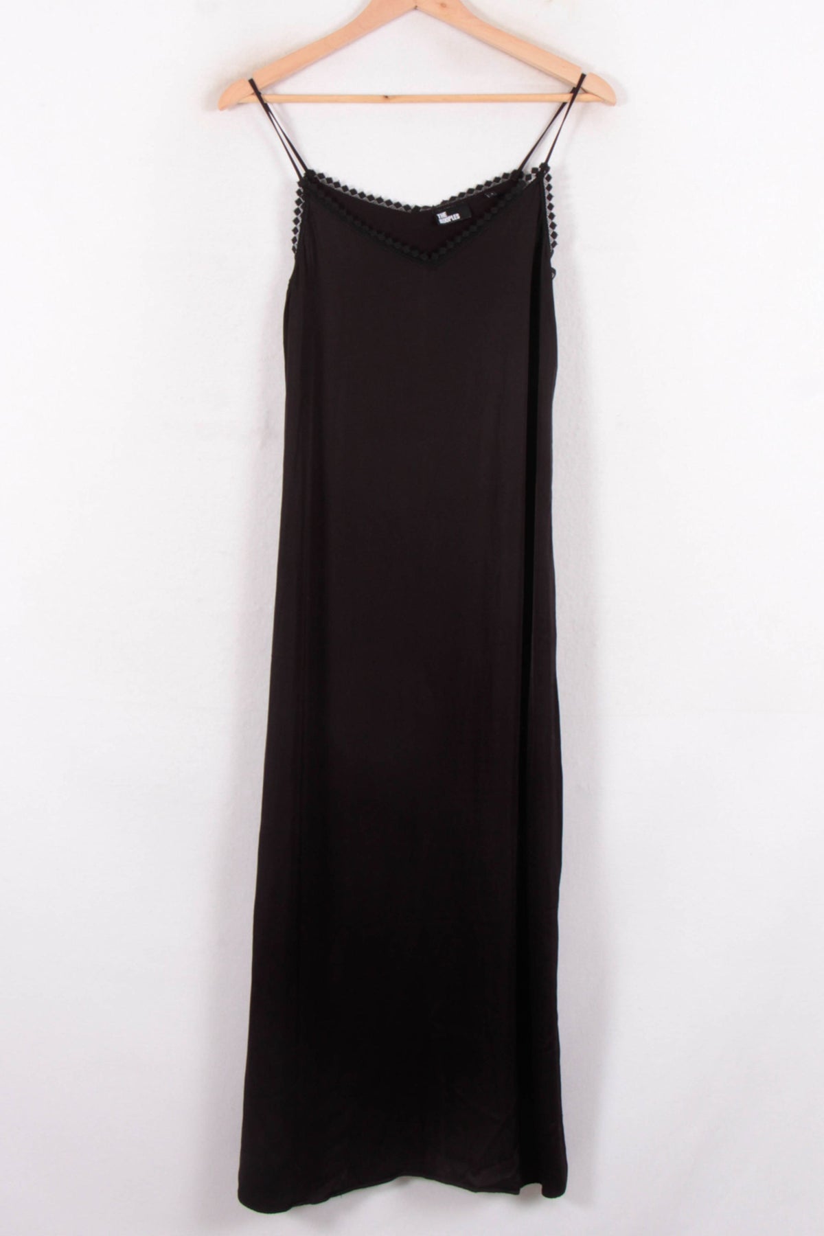 Robe longue noire à bretelles fines The Kooples, taille S/36, élégante et raffinée. Cette pièce se distingue par sa matière fluide soulignée de délicats détails façon galons pompons le long de l'encolure, ajoutant une touche singulière à sa silhouette sobre. Parfaite pour une soirée habillée ou un événement élégant où l’on souhaite arborer une allure sophistiquée et minimaliste.