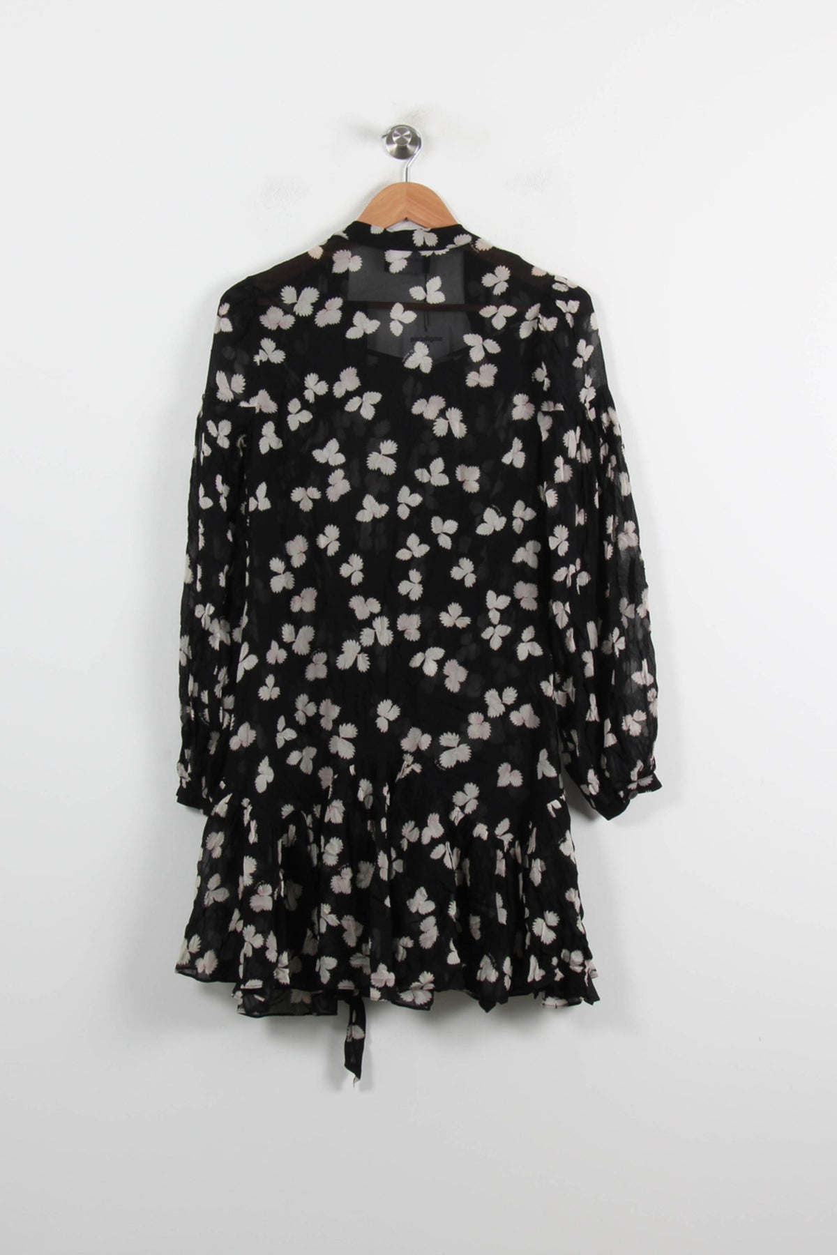 Robe courte noire à motif fleuri The Kooples, taille S/36, élégante et raffinée, parfaite pour toutes les occasions. Confectionnée dans une matière fluide et légère, elle se distingue par ses motifs floraux blancs délicatement répartis et ses manches longues bouffantes pour une silhouette féminine et moderne. Idéale pour un dîner chic ou une sortie entre amis en soirée.