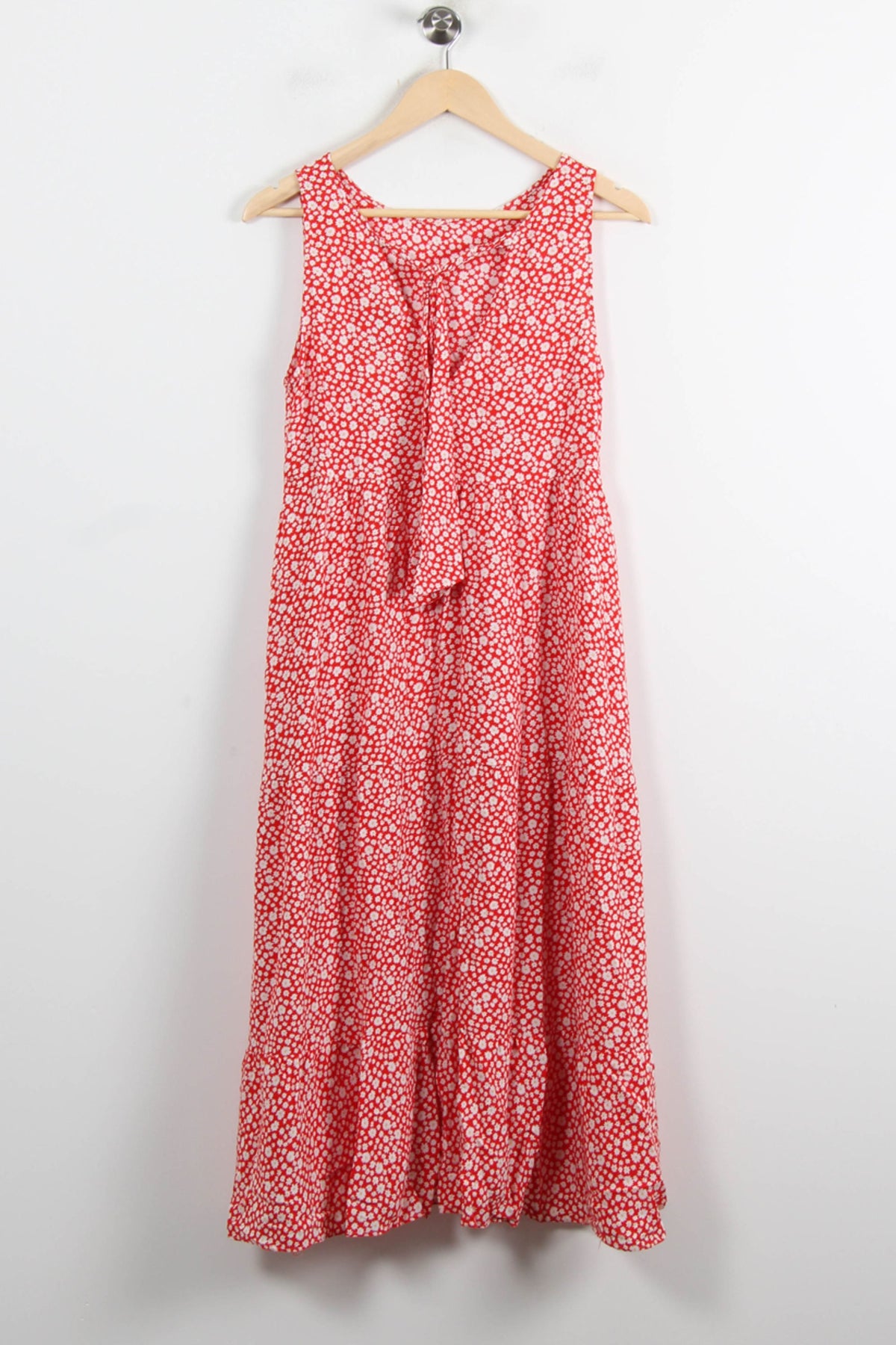 Robe longue rouge imprimée à motifs blancs Sézane, taille S/36, parfaite pour valoriser la silhouette avec élégance. Cette pièce se distingue par sa matière fluide et légère ainsi que ses motifs fleuris délicats, apportant une touche d’originalité et de fraîcheur. Idéale pour une journée estivale, un déjeuner entre amis ou une promenade en ville.