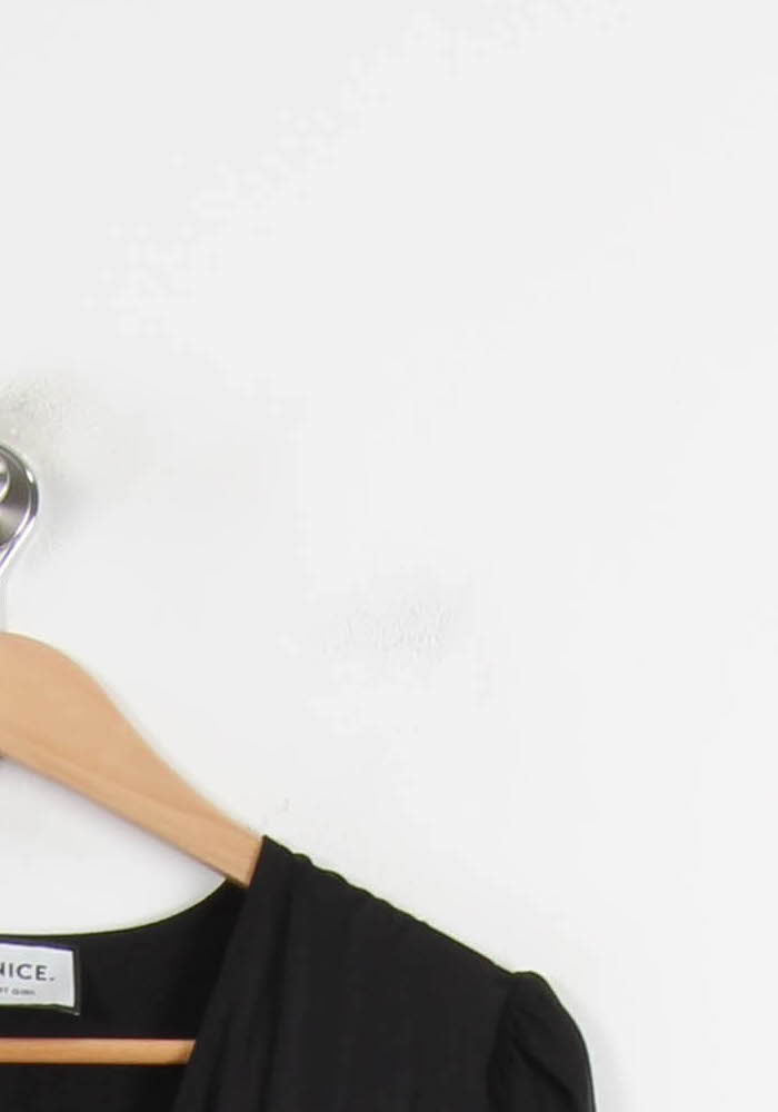 Robe courte noire Bérénice, taille S/36, coupe cache-cœur et manches longues, pour une silhouette élégante et intemporelle. Sa matière fluide apporte un tombé léger et délicat, tandis que ses jeux de fronces à la taille et au bas de la jupe lui confèrent un style raffiné et unique. Parfaite pour une soirée habillée, un dîner ou un événement chic où l’élégance discrète s’impose.