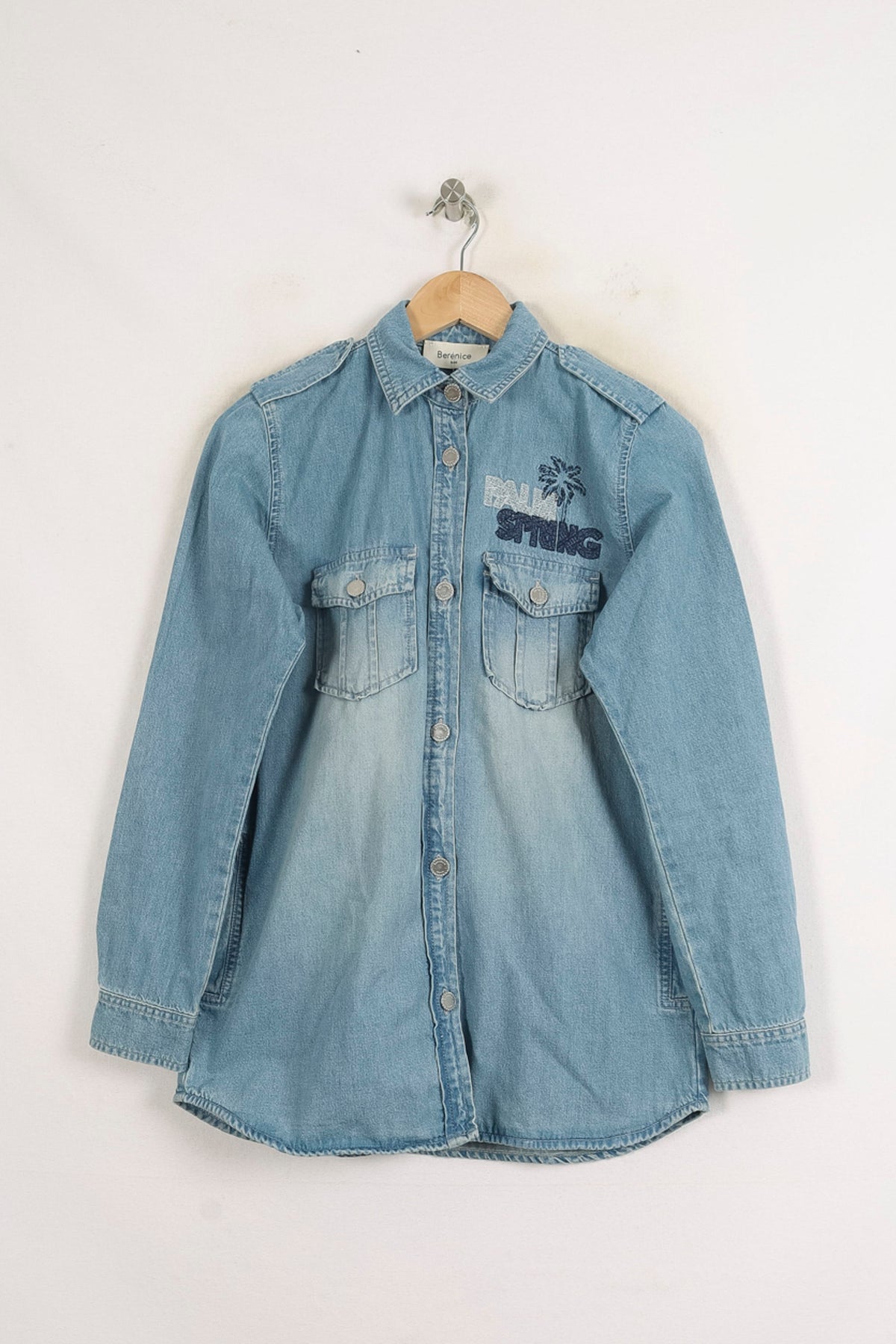 Veste en jean bleu oversize Bérénice, taille S/36, arborant une coupe décontractée et deux poches poitrine à rabat, idéale pour un look casual et tendance. Confectionnée dans un denim de qualité à effet légèrement délavé, cette veste se distingue par ses surpiqûres apparentes et ses broderies discrètes sur la poitrine qui lui apportent une touche d’originalité. Parfaite pour accompagner une tenue décontractée lors d’un week-end en ville ou d'une sortie entre amis.