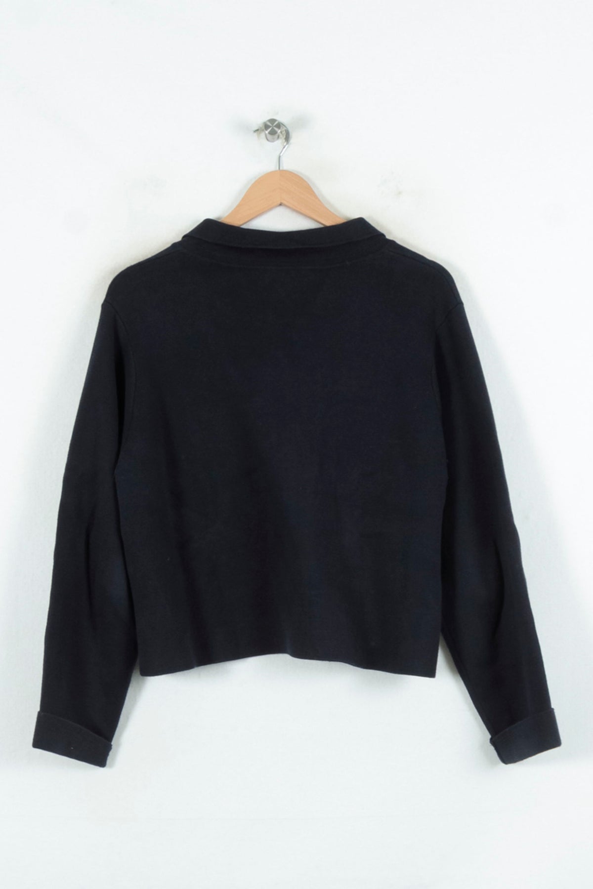 Pull bleu La Fée Maraboutée en taille XL/42, au design contemporain rehaussé de poches à rabat boutonnées et d’une fermeture zippée dorée. Sa matière semble douce et confortable, la pièce se distingue par des détails raffinés comme les poches plaquées à boutons métalliques dorés, le col classique et le revers soigné aux poignets, pour une allure élégante et moderne. Ce pull sera idéal pour sublimer une tenue de bureau ou accompagner une sortie citadine.
