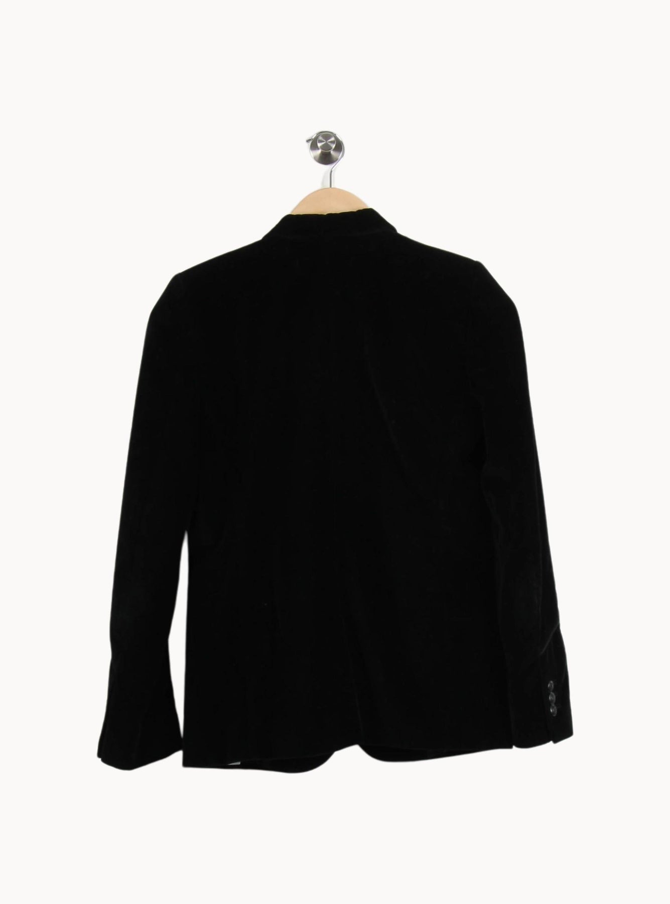 Veste noire en velours The Kooples, taille S/36, modèle élégant à la coupe structurée. Confectionnée dans une matière velours raffinée avec deux boutons sur le devant, elle se distingue par ses poches passepoilées et son écusson discret sur la poitrine, gage d’originalité et de caractère. Idéale pour une soirée habillée ou un événement professionnel où élégance et distinction s’imposent.