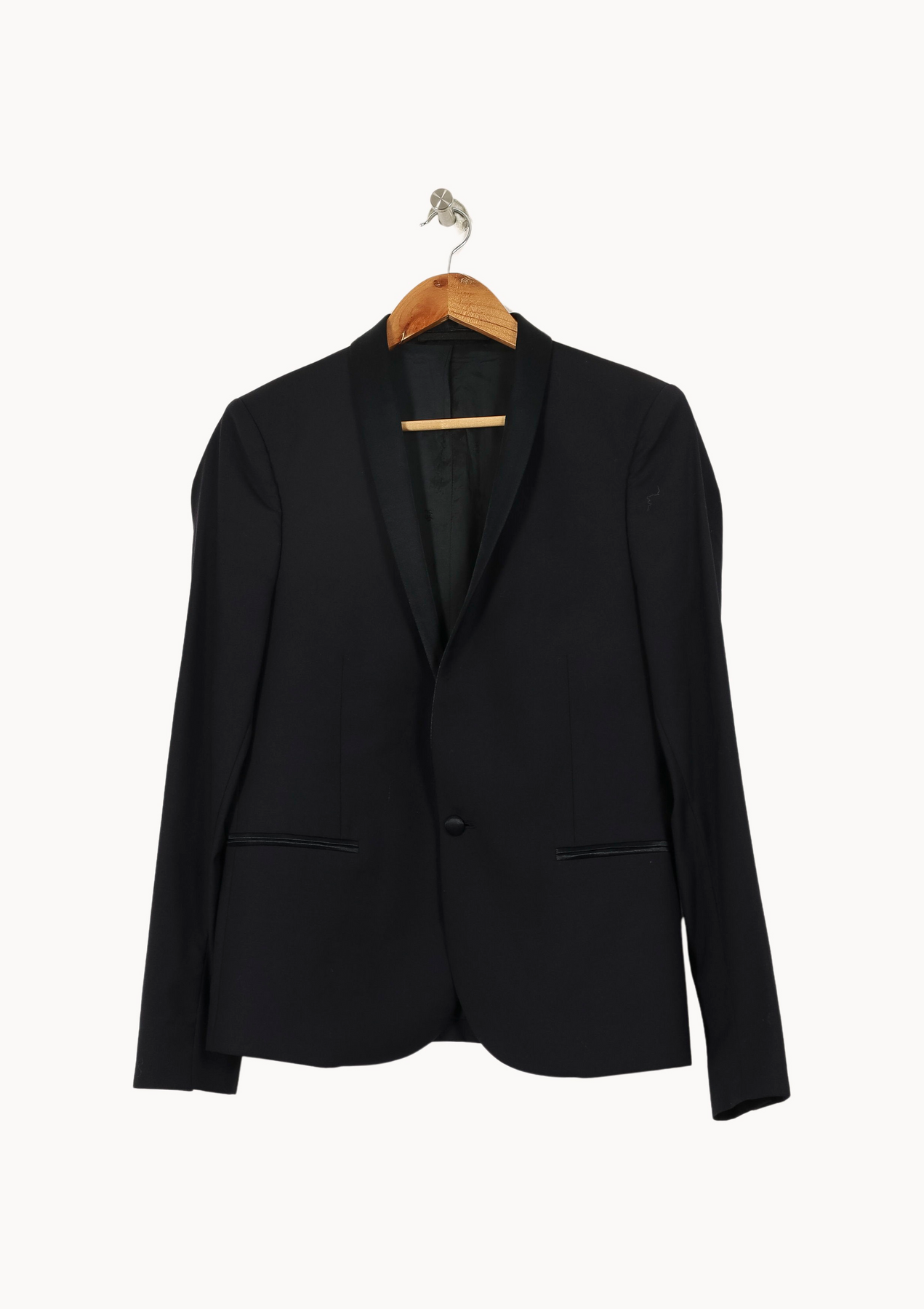 Veste bleu The Kooples, taille XXXL/46, élégante et moderne, idéale pour une silhouette affirmée. La matière semble être de qualité, avec une finition satinée au niveau du col et des poches passepoilées, apportant une touche sophistiquée et raffinée à l’ensemble. Parfaite pour une cérémonie, un cocktail ou une soirée habillée.