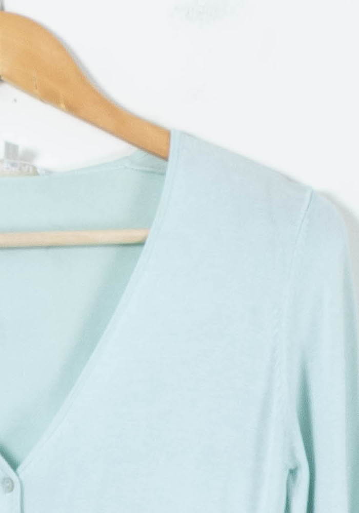 Cardigan vert clair Kookai, taille S/36 : ce modèle élégant et intemporel présente une coupe classique à manches longues, rehaussée d’un joli décolleté en V et d’une fermeture boutonnée sur le devant. Sa matière douce et légère ainsi que ses finitions raffinées confèrent à ce cardigan un charme discret et une grande polyvalence, parfait pour compléter une tenue raffinée tout en offrant un confort optimal. À porter idéalement lors d'une journée au bureau ou pour sublimer une silhouette décontractée lors d’un déjeuner entre amis.