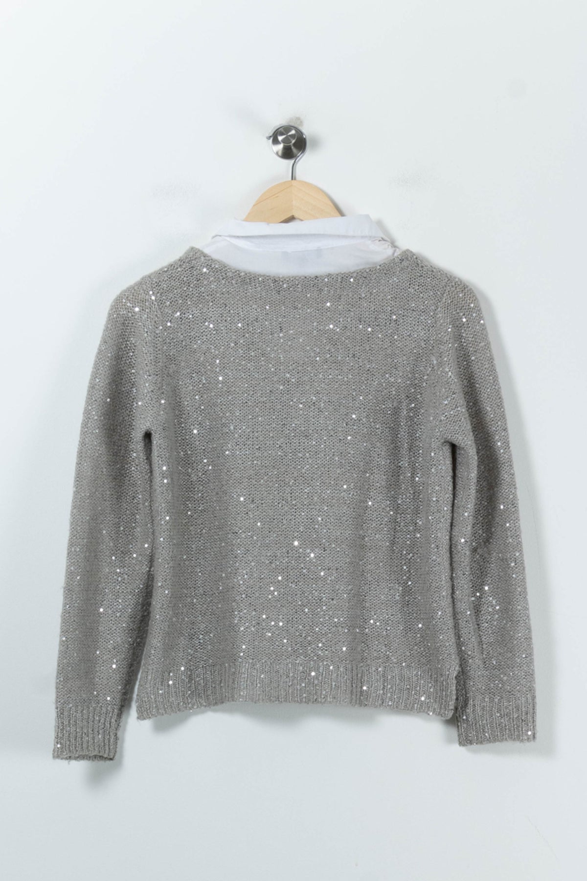 Pull gris à sequins Caroll, taille L/40 – Un pull élégant de la marque Caroll, alliant modernité et raffinement grâce à sa teinte grise lumineuse et ses délicats sequins intégrés. La composition mêlant polyester, acrylique, polyamide et mohair assure douceur et chaleur, tandis que le col chemise en laine et la doublure 100% coton apportent confort et finition soignée, conférant à la pièce une touche unique et sophistiquée. Idéal pour une journée professionnelle ou un dîner chic, ce pull sublimera vos tenues avec subtilité et éclat.