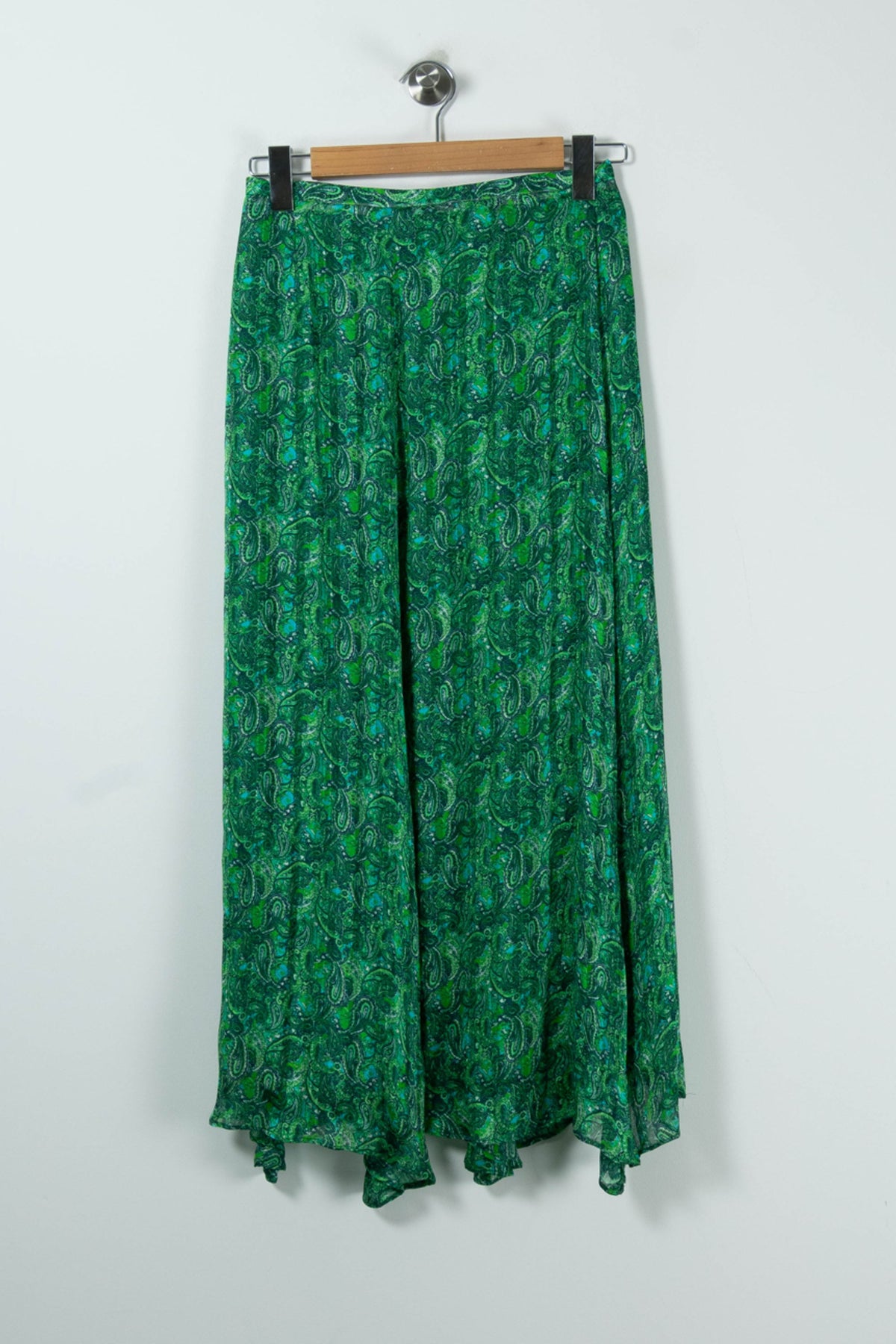 Pantalon large vert femme Weill taille M/38, allie élégance et modernité pour une silhouette raffinée. Confectionné en 100% viscose, ce pantalon se distingue par son tissu fluide et son imprimé vert sophistiqué, apportant confort et originalité à votre tenue. Idéal pour une journée estivale ou une sortie décontractée tout en restant chic.