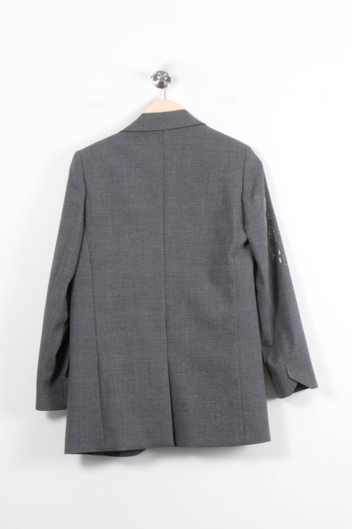 Veste blazer Zadig&Voltaire gris taille S/36, coupe droite avec fermeture simple bouton. Confectionnée dans une matière au tombé structuré, cette veste se distingue par des détails cloutés argentés sur la manche gauche qui lui confèrent une touche contemporaine et élégante. Parfaite pour une réunion professionnelle ou une soirée chic, elle apporte une allure sophistiquée à toute tenue.