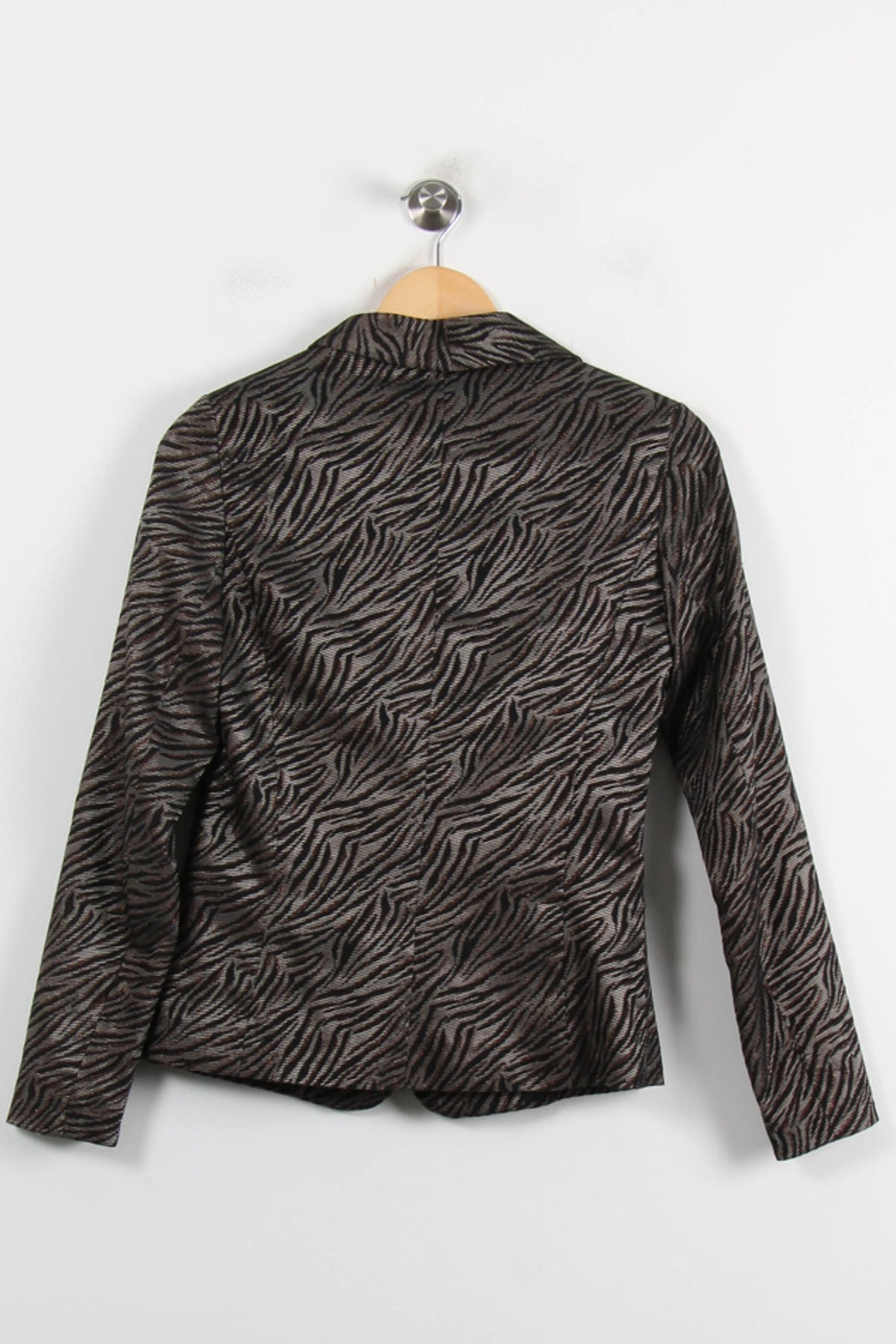 Veste multicolore One Step, taille S/36 : cette veste élégante séduit par son imprimé animalier raffiné et sa coupe structurée. Confectionnée dans une matière texturée avec un motif zébré, elle se distingue par ses détails soignés et son unique bouton central qui apporte une note sophistiquée. Parfaite pour dynamiser une tenue professionnelle ou sublimer une soirée chic.