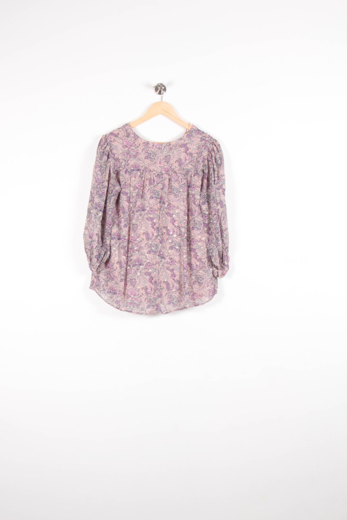 Tunique fluide à motif floral rose, Maison 123, taille M/38 - un top élégant parfait pour sublimer votre tenue du quotidien. Confectionné dans une matière fluide et légère, ce top se distingue par son imprimé délicat et ses manches longues à poignets boutonnés, apportant raffinement et singularité à ce modèle. Idéal pour une journée de travail ou un déjeuner en terrasse entre amies.