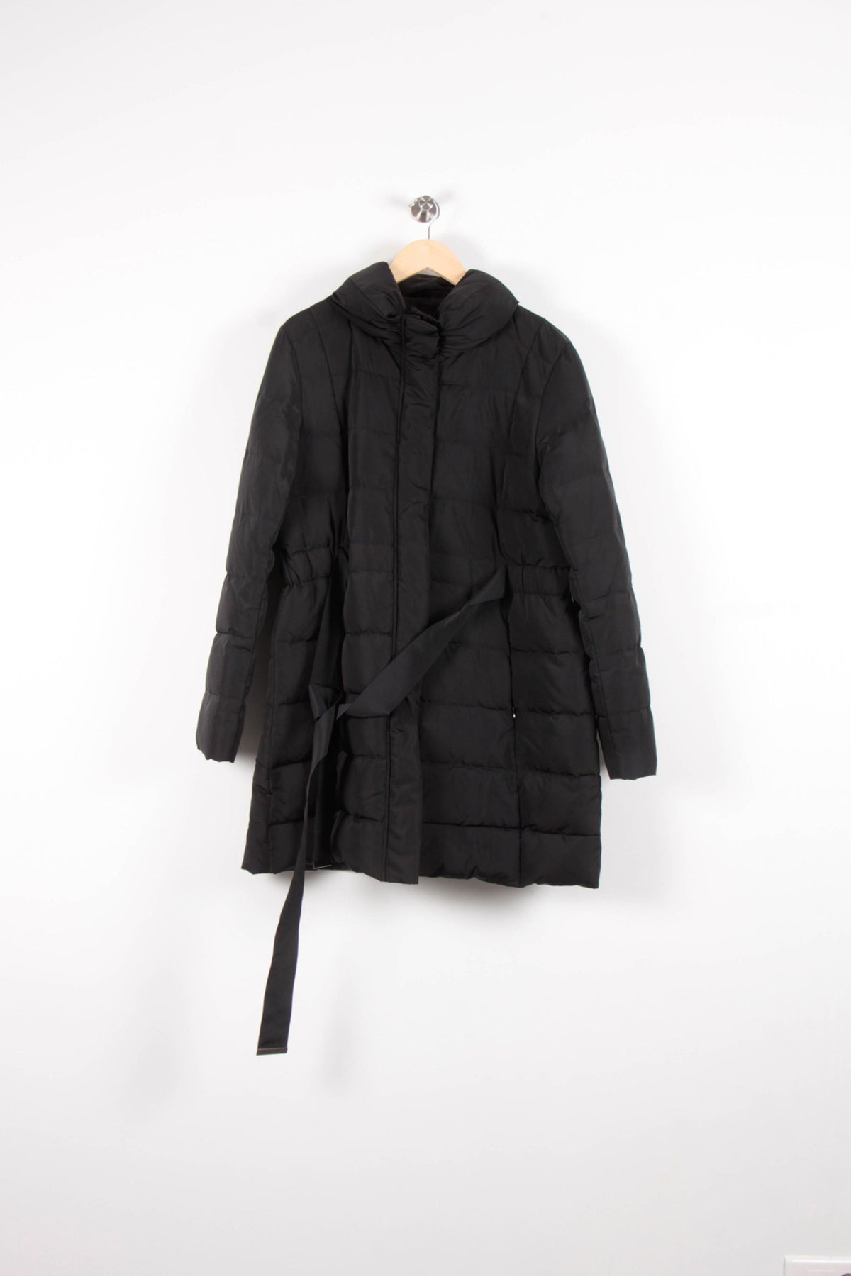 Manteau long matelassé noir Maison 123, taille XXXL/46, alliant élégance et fonctionnalité pour une silhouette moderne. Confectionné dans une matière matelassée, ce manteau se distingue par sa ceinture à la taille qui structure et féminise la silhouette, ainsi que sa capuche intégrée pour une protection optimale contre le froid. Idéal pour vos déplacements urbains lors des journées hivernales où confort et style sont indispensables.