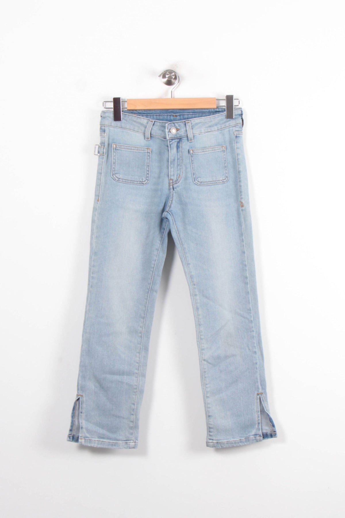 Jean bleu clair Zadig&Voltaire taille S/36, coupe droite avec poches plaquées sur le devant. Confectionné dans une toile de denim délavée, ce pantalon se distingue par ses finitions soignées et ses fentes discrètes à l’ourlet, apportant une touche d’originalité et de modernité. Idéal pour une journée décontractée en ville ou un week-end entre amis.