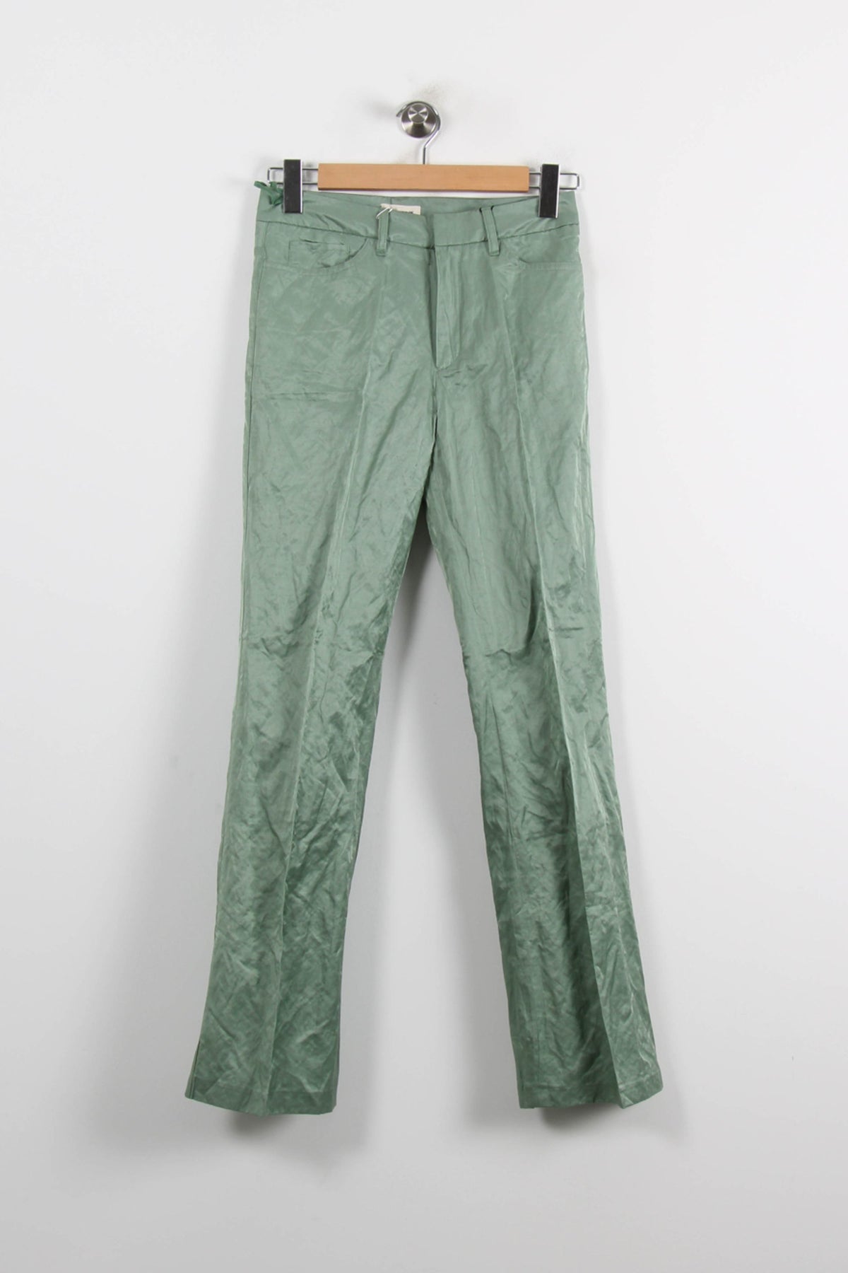 Pantalon vert Zadig&Voltaire, taille XS/34, coupe droite, idéal pour une allure élégante et moderne. La matière à l’aspect légèrement satiné et le tissu fluide confèrent à ce pantalon un toucher sophistiqué et un tombé raffiné, tandis que les finitions soignées signent l’ADN de la maison Zadig&Voltaire. Parfait pour une réunion professionnelle ou un événement chic en journée.