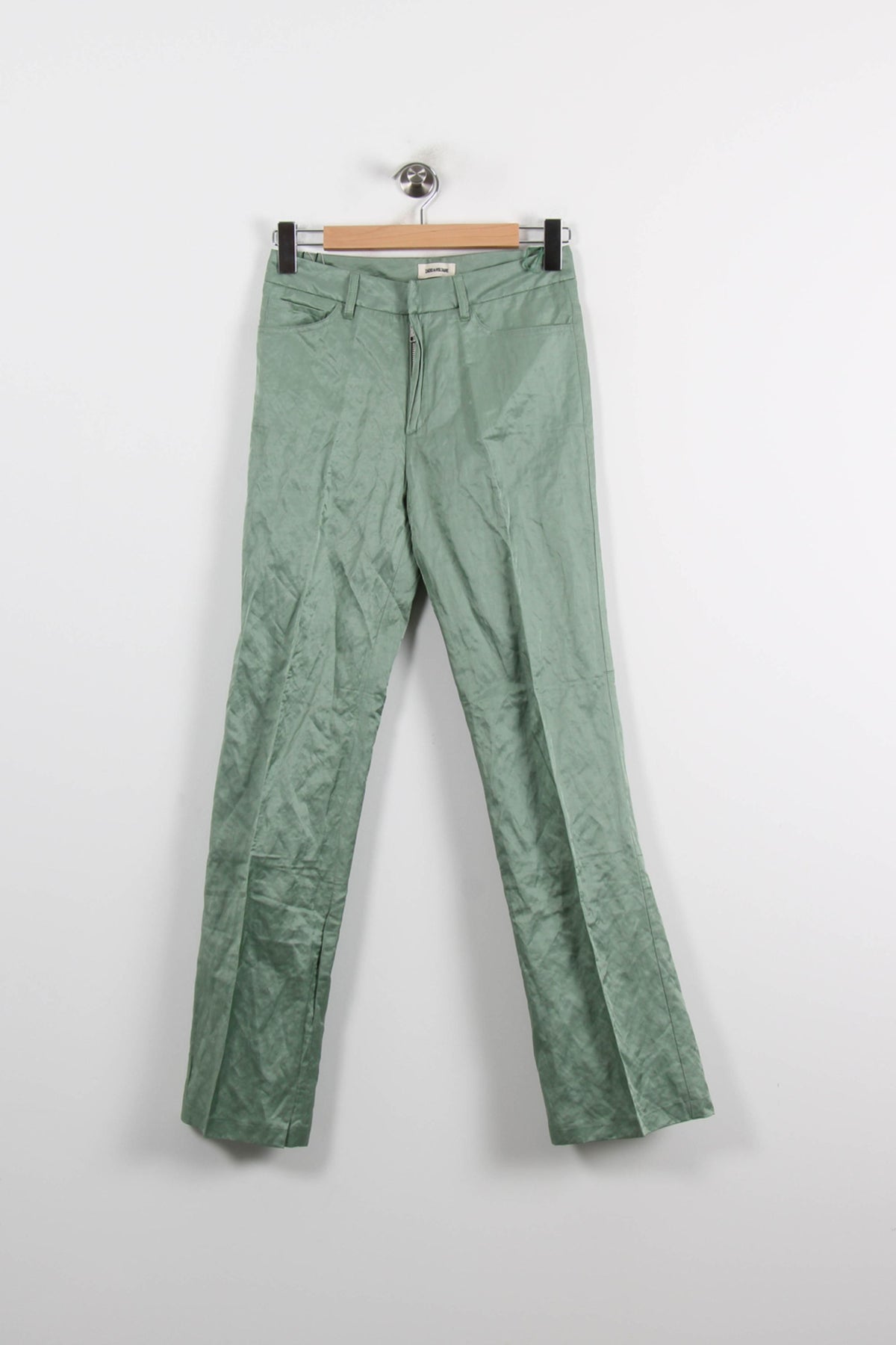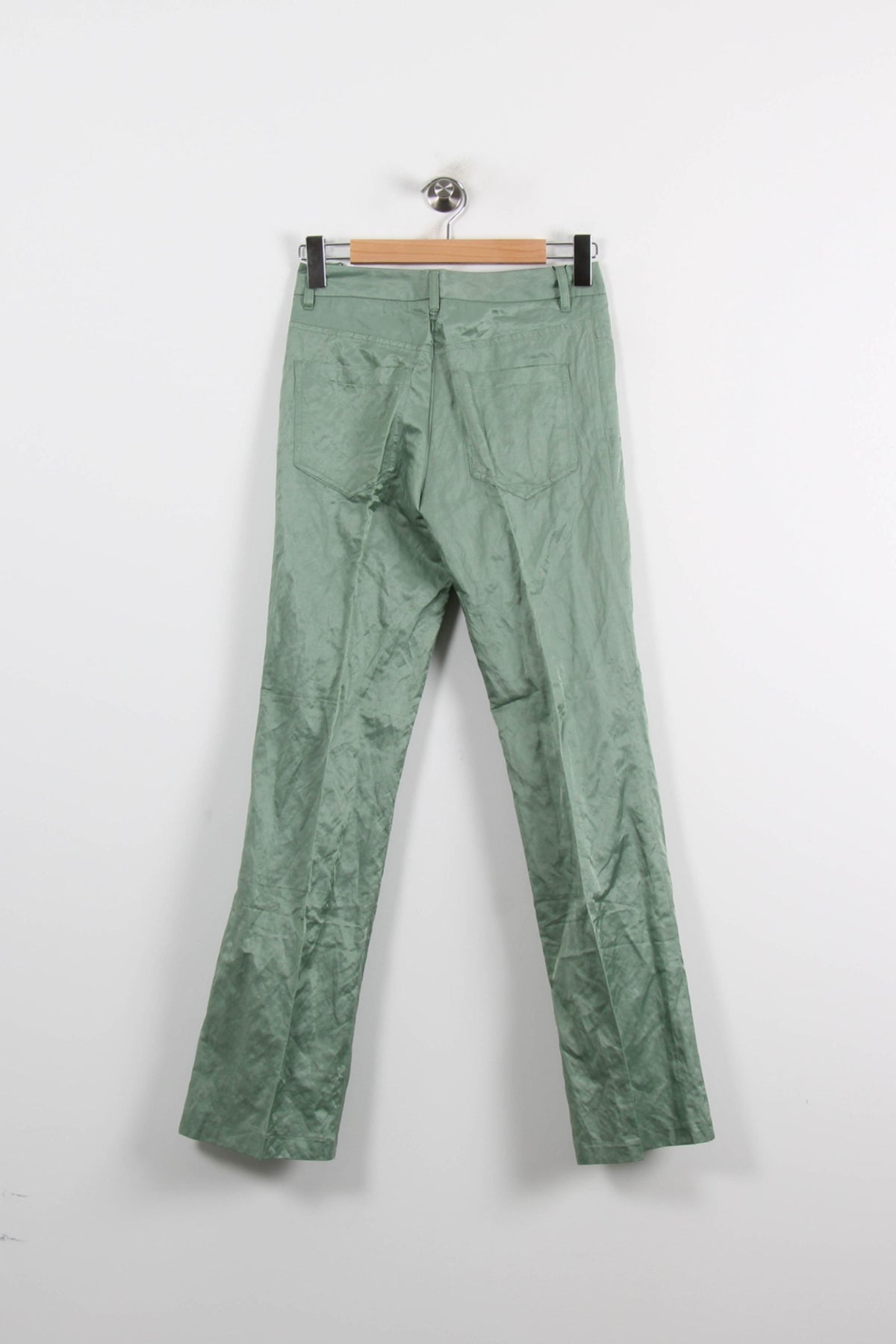 Pantalon vert taille XS/34 de la marque Zadig&Voltaire, coupe droite avec passants pour ceinture et fermeture éclair discrète. Confectionné dans une matière satinée légère, il se distingue par sa texture subtilement brillante et ses finitions soignées qui offrent une allure raffinée et contemporaine. Idéal pour un look élégant lors d’un déjeuner professionnel ou une sortie citadine sophistiquée.