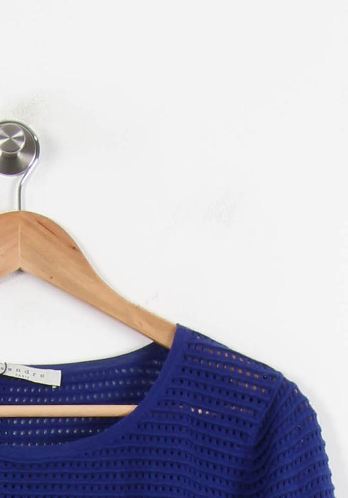 Pull ajouré bleu Sandro, taille S/36, alliant élégance et modernité pour un look raffiné. Sa maille travaillée en points ajourés confère à ce modèle un aspect léger et texturé, soulignant le savoir-faire minutieux de la marque Sandro. Parfait pour une sortie chic en journée ou un dîner entre amis, ce pull sublimera vos tenues avec subtilité.