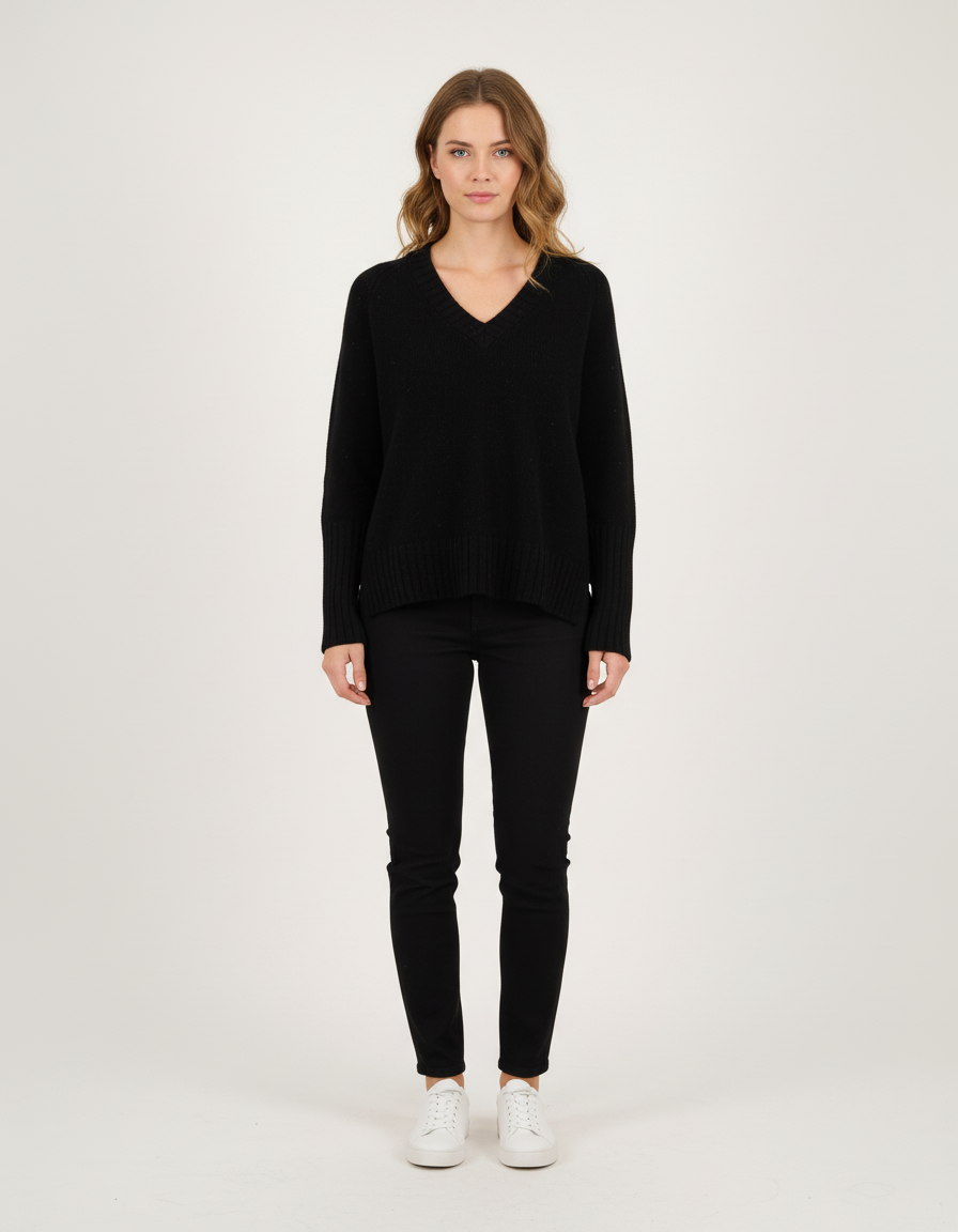 Pull noir Zadig&Voltaire en taille M/38, au design classique et intemporel, parfait pour les amateurs de pièces épurées. Confectionné dans une maille à la texture douce, il se distingue par son col en V profond et ses finitions en bord-côte qui apportent une touche d’élégance discrète à l’ensemble. Idéal pour une journée au bureau ou un dîner en ville, ce pull s’adapte à toutes les circonstances avec raffinement.