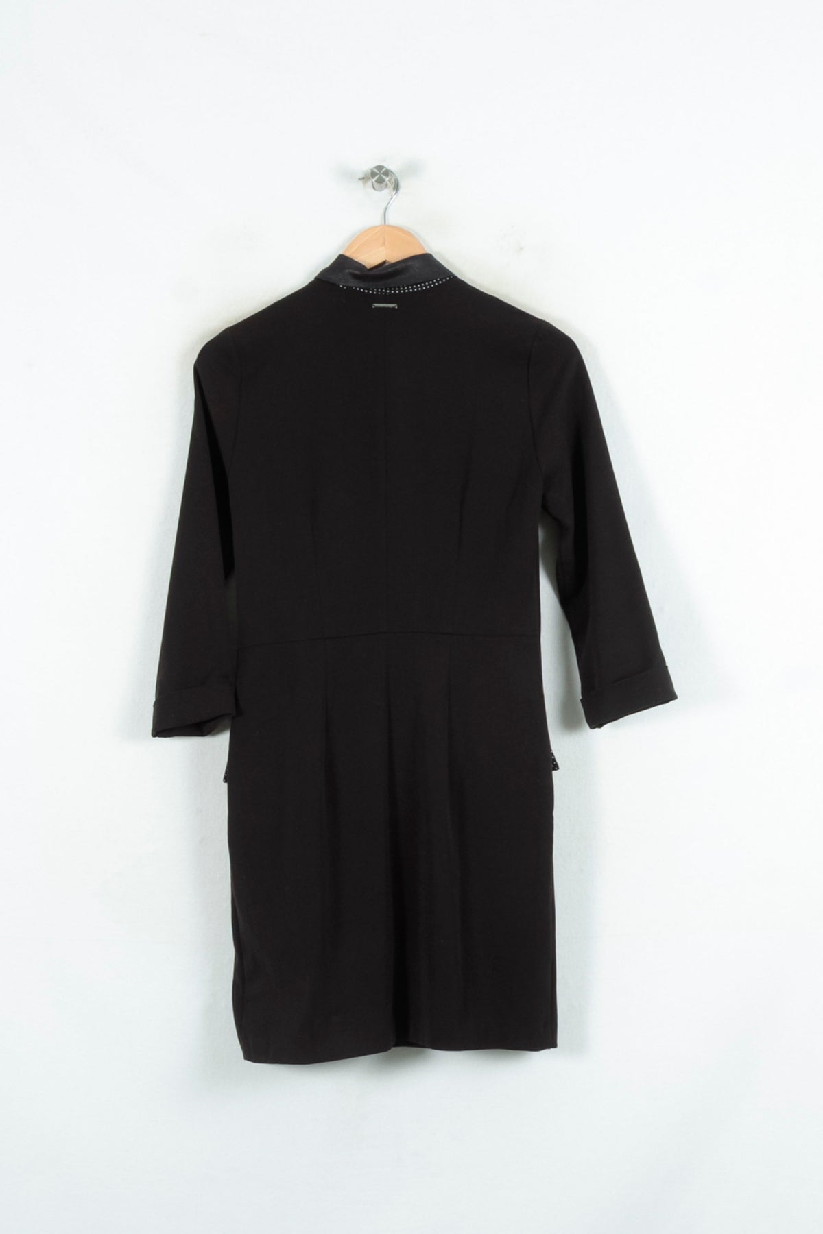 Robe blazer noire One Step, taille XS/34, à manches trois-quarts et double boutonnage apportant une élégance sophistiquée à cette pièce emblématique. Le mélange de matières, avec un col en tissu satiné et des détails en contraste sur les poches, confèrent à cette robe un caractère raffiné et unique, parfait pour sublimer la silhouette. Idéale pour une réunion professionnelle ou une soirée habillée où distinction et modernité sont de mise.