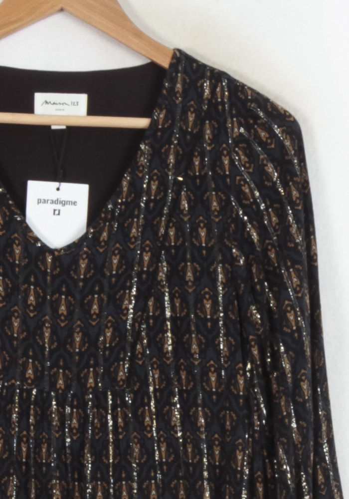 Robe multicolore à motifs, taille XS/34, signée Maison 123. Confectionnée dans un tissu léger à imprimé graphique, cette robe se distingue par son encolure en V et ses manches trois-quarts, offrant confort et originalité à votre garde-robe. Idéale pour une sortie citadine ou un déjeuner entre amis, elle allie élégance discrète et modernité.