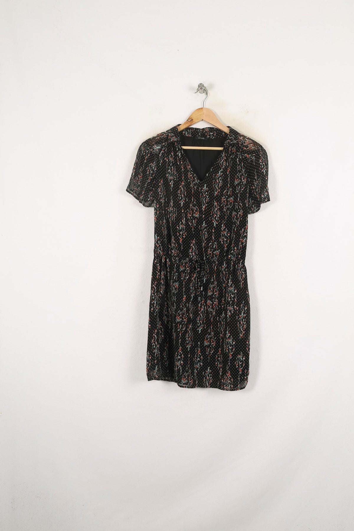 Robe courte noire imprimée, One Step, taille XS/34 – une pièce élégante à la coupe fluide et féminine signée One Step. Confectionnée dans une matière légère à imprimé discret, cette robe présente un col en V, des manches courtes et une taille élastiquée pour souligner la silhouette, offrant ainsi un style raffiné et facile à porter. Idéale pour une journée au bureau ou un déjeuner en ville, elle allie confort et allure moderne.