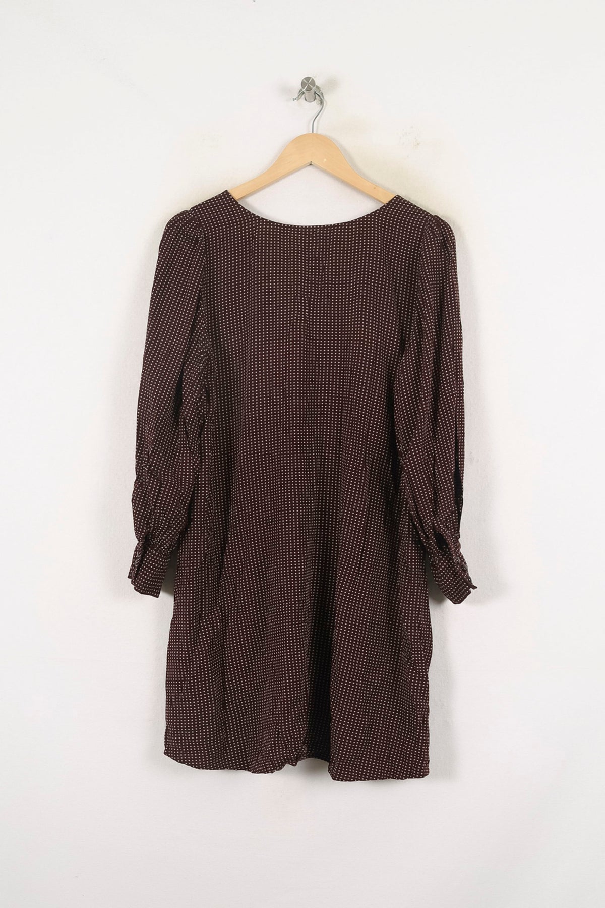 Robe fluide à petits motifs violets Des petits hauts, taille L/40, allie élégance et confort pour toutes les morphologies. Confectionnée dans une matière légère, elle se distingue par ses manches longues légèrement bouffantes, ses petits boutons sur le devant et son subtil imprimé à pois, conférant une allure féminine et raffinée. Idéale pour une journée au bureau ou une sortie entre amies, elle se porte aisément du matin au soir.